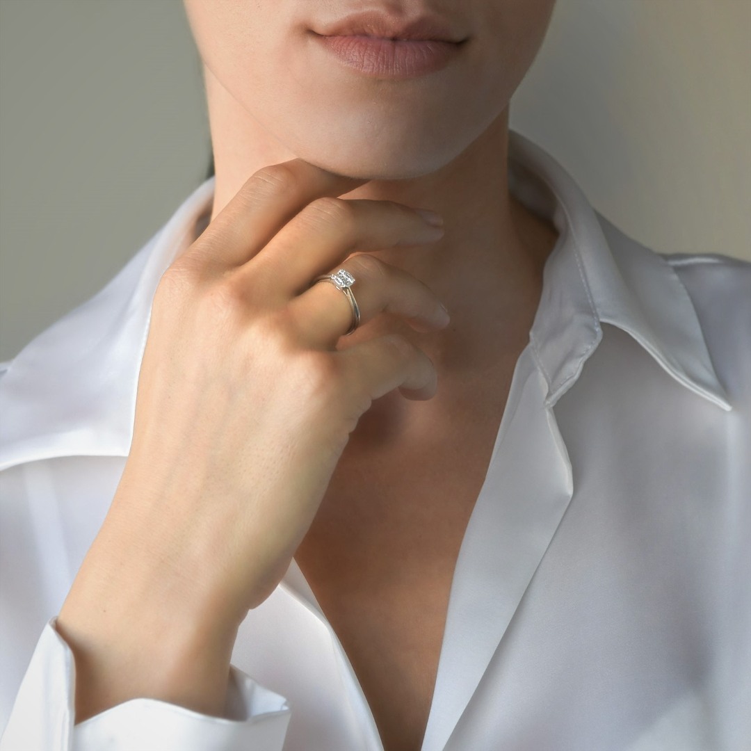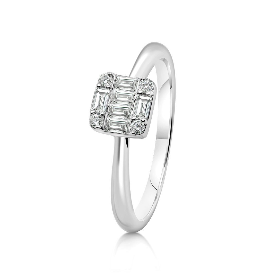 Inel de logodnă din aur alb de 18K, încrustat cu 6 Diamante Baguette și 4 Diamante Round Brilliant, cu o greutate totală de 0.24ct.