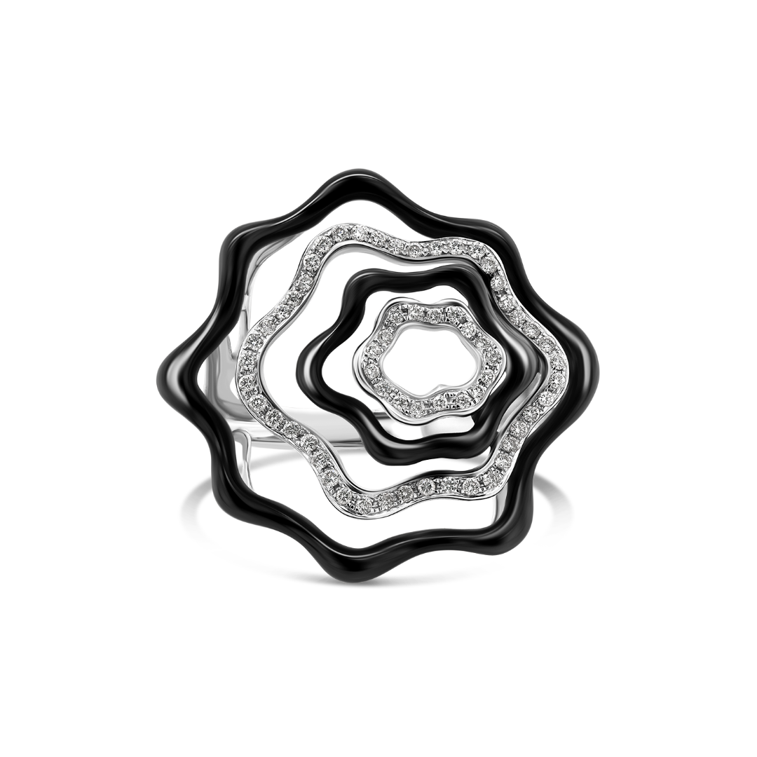 Inel din aur alb de 18K cu Diamante naturale și email negru.