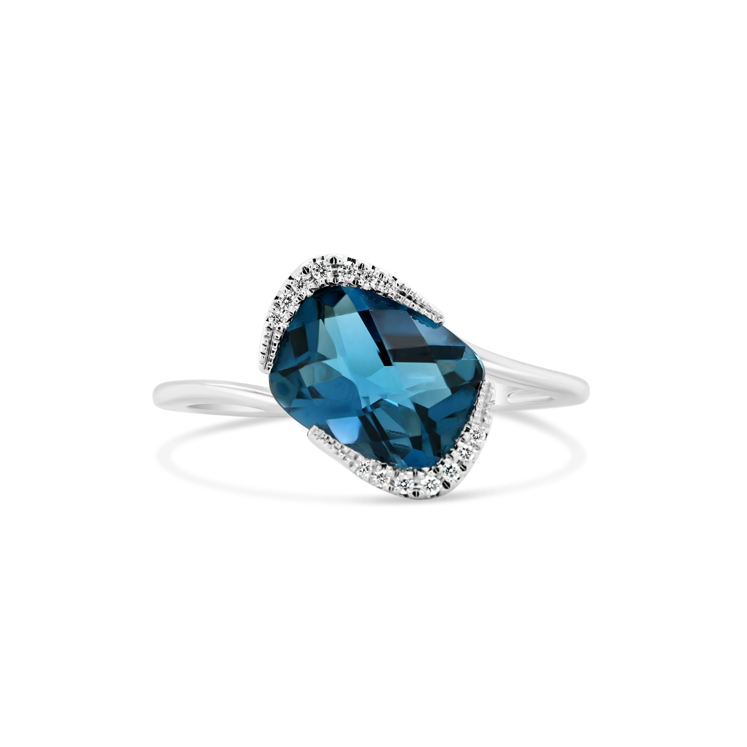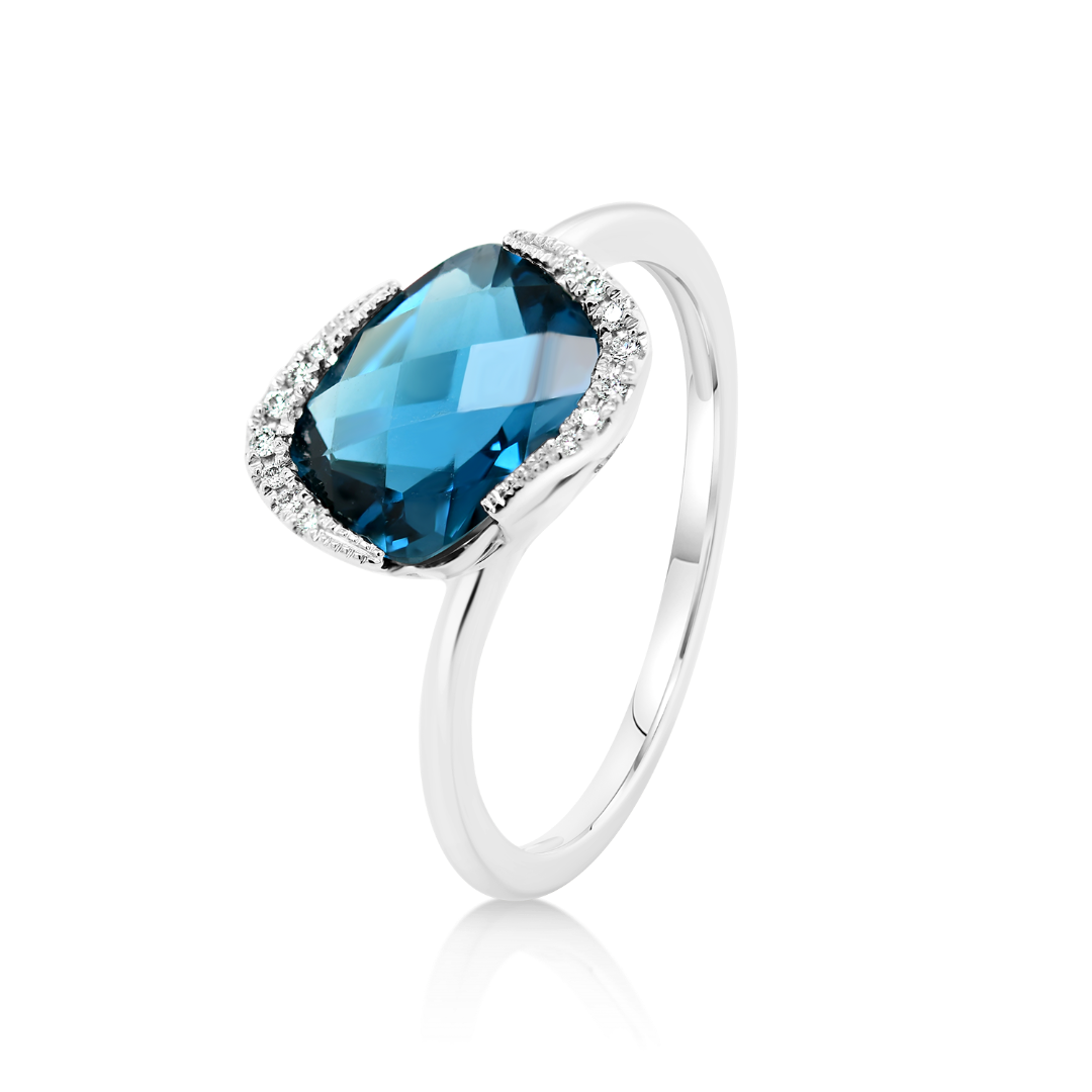 Inel din aur alb de 18K cu Diamante naturale și London Blue Topaz
