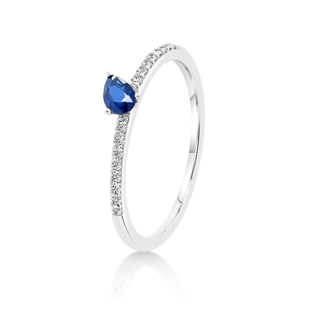 Inel din aur alb de 18K cu Diamante naturale și Safir