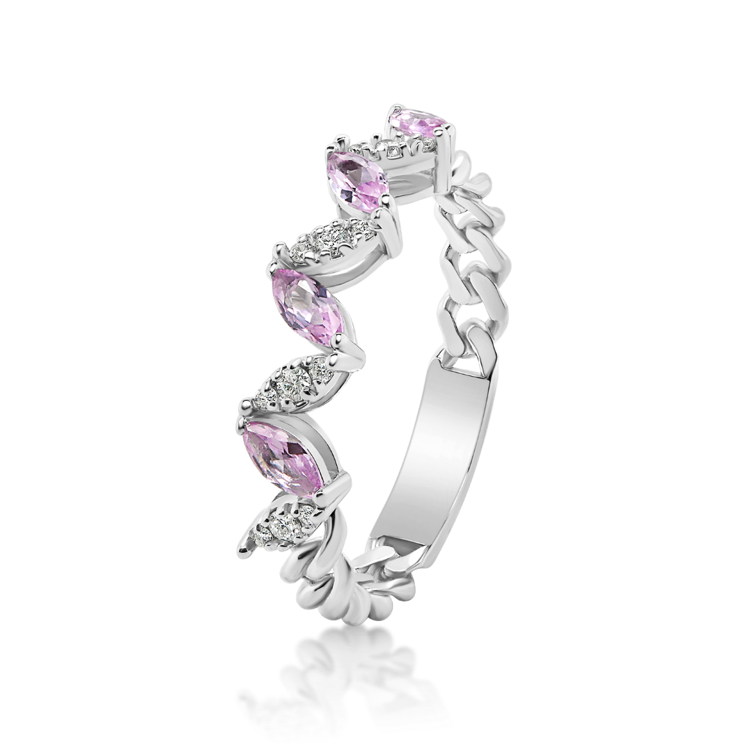 Inel din aur alb de 18K cu Diamante și Pink Quartz
