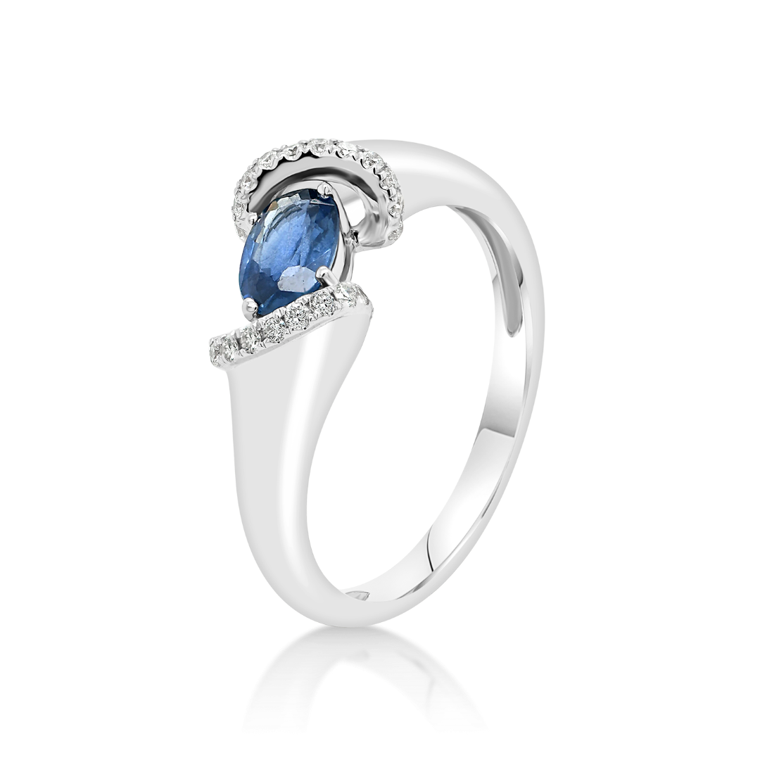 Inel din aur alb de 18K cu Safir albastru si Diamante Naturale