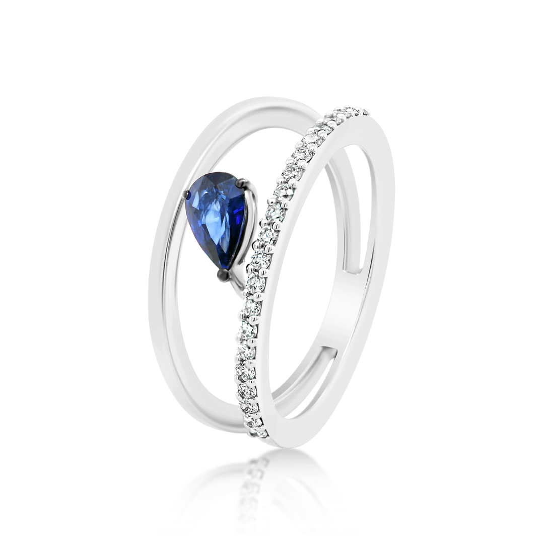 Inel din aur alb de 18K cu Diamante naturale și Safir albastru
