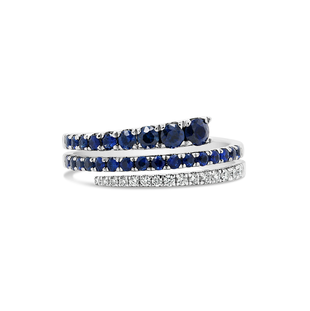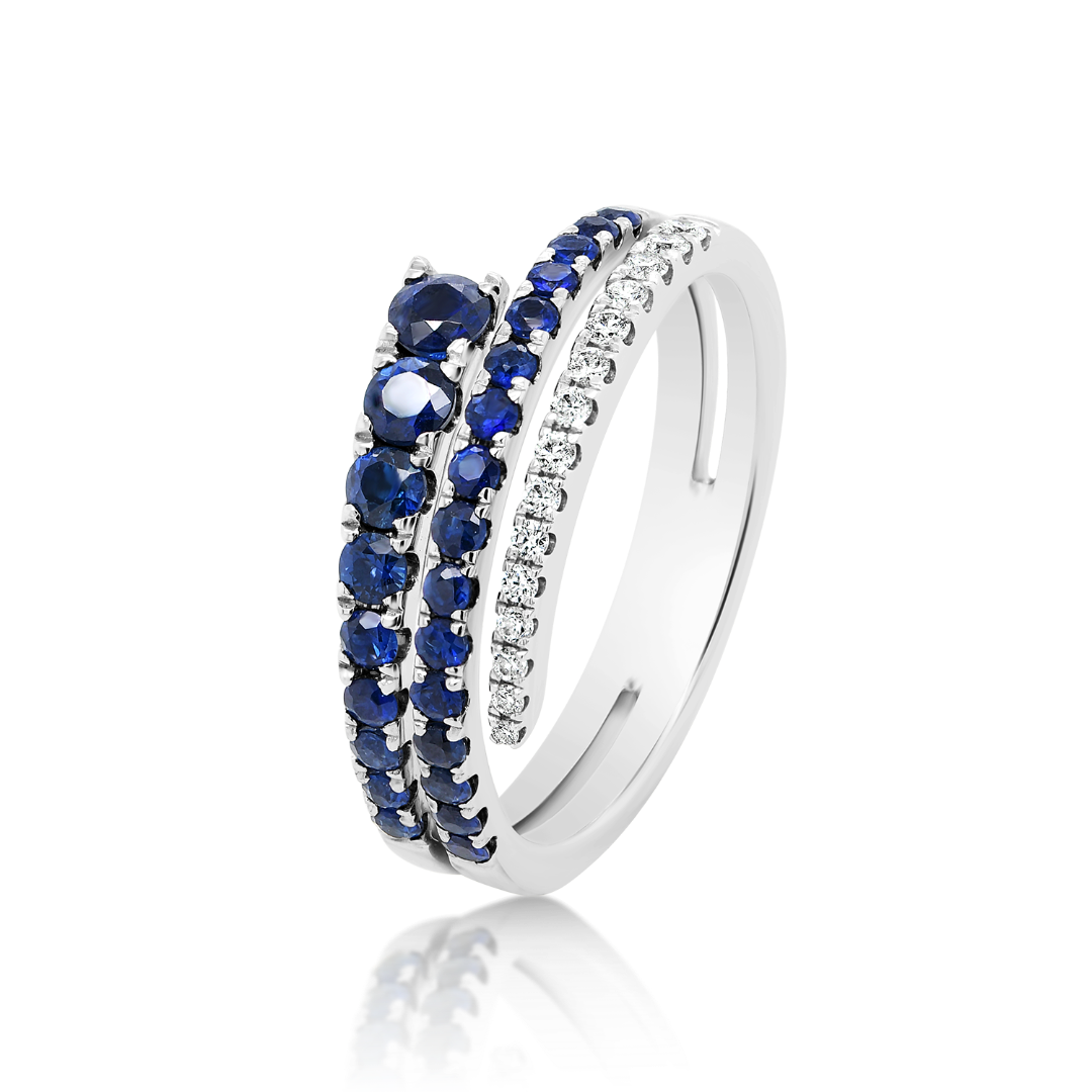 Inel din aur alb de 18K cu 15 Diamante Round Brilliant de 0.11ct și 25 de Safire albastre de 0.76ct.