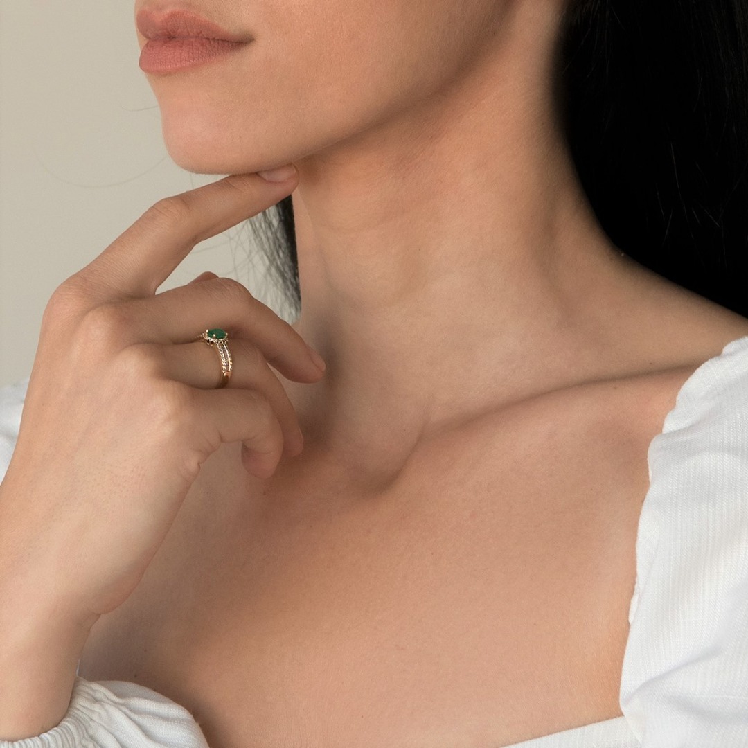 Inel din aur alb de 18K cu Smarald și Diamante naturale