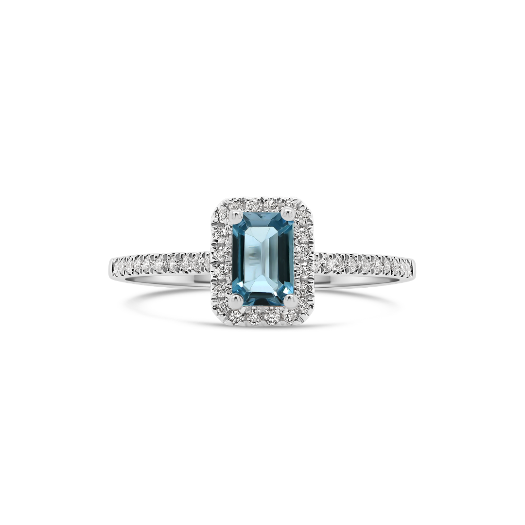 Inel din aur alb de 18K, cu un London Blue Topaz și 40 de Diamante Round Brilliant.