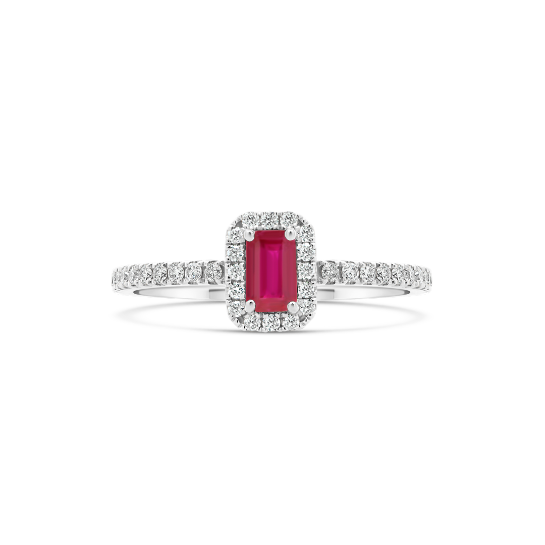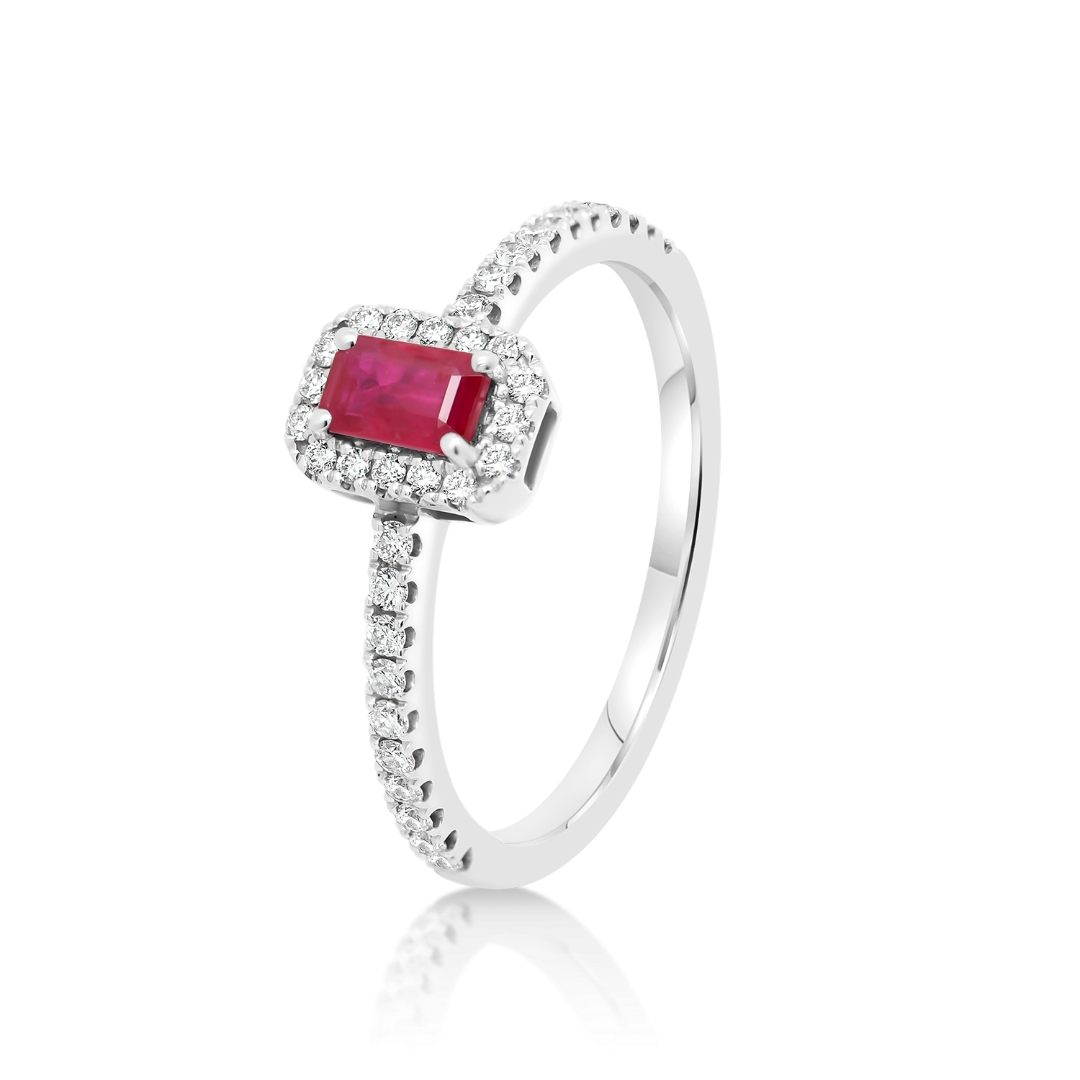 Inel din aur alb de 18K, încrustat cu un Rubin de 0.384ct și 38 de Diamante incolore Brilliant cut de 0.182ct.