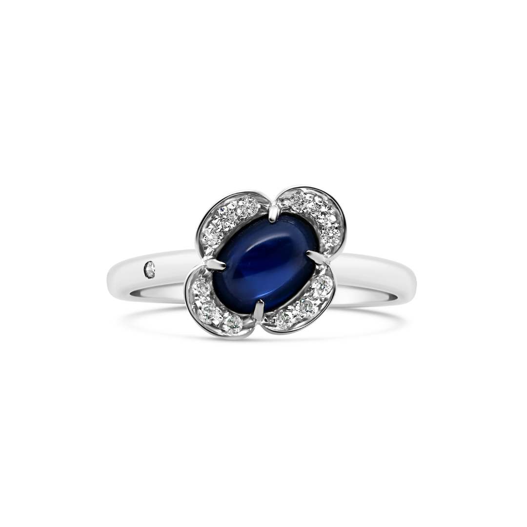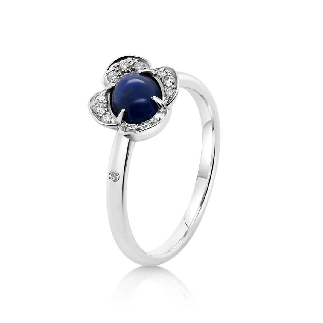 Inel din aur alb de 18K cu Safir și Diamante naturale.