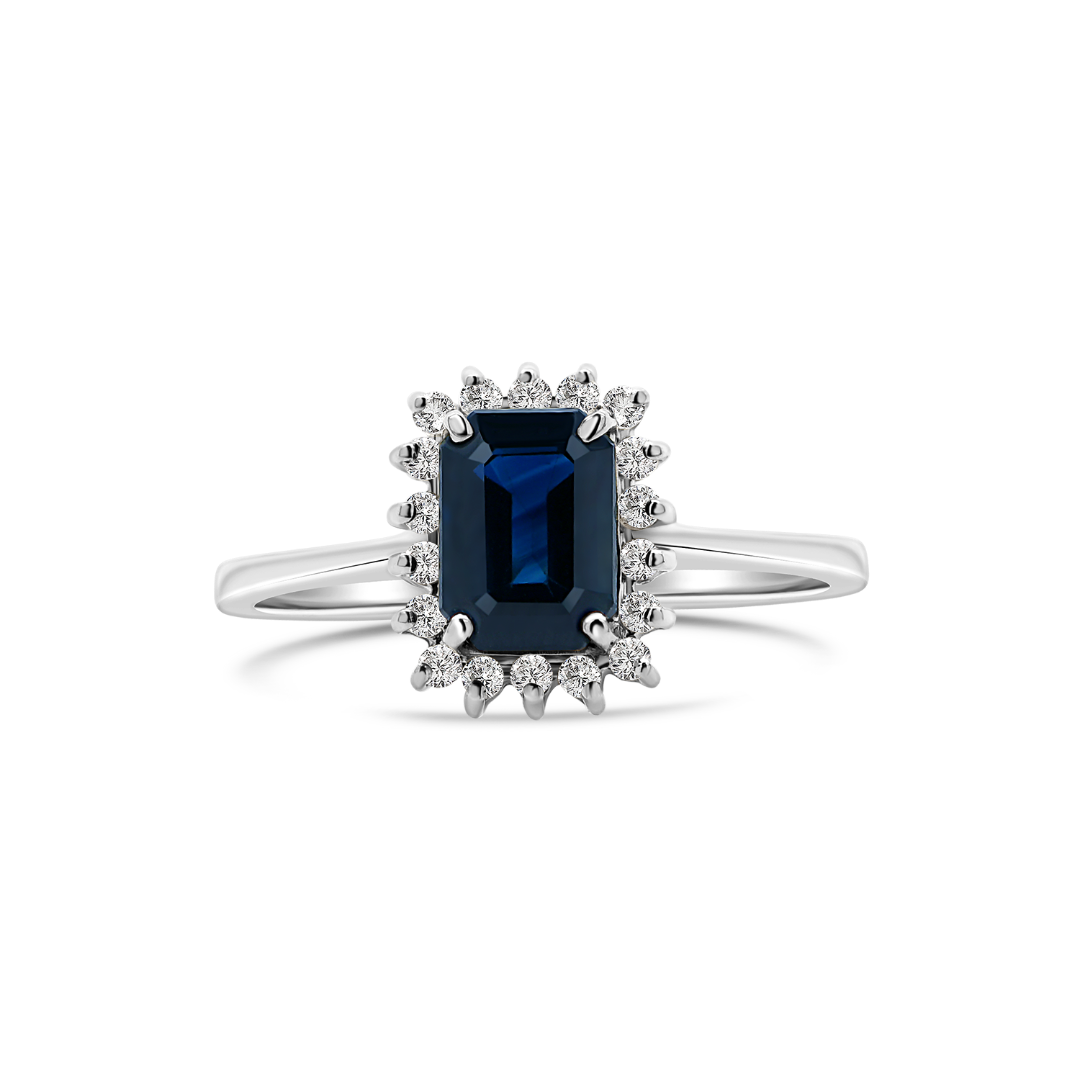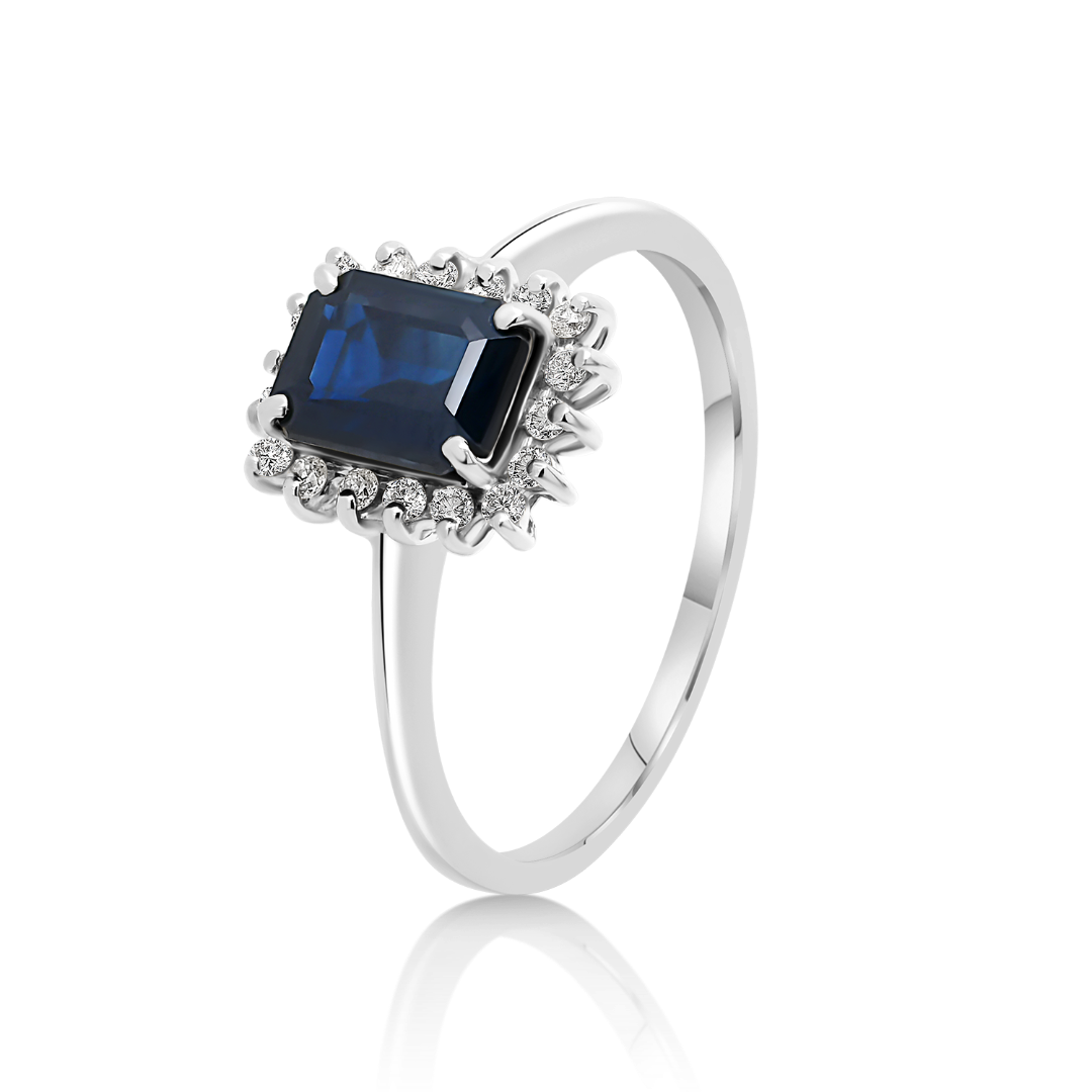 Inel din aur alb de 18K cu Safir și Diamante naturale