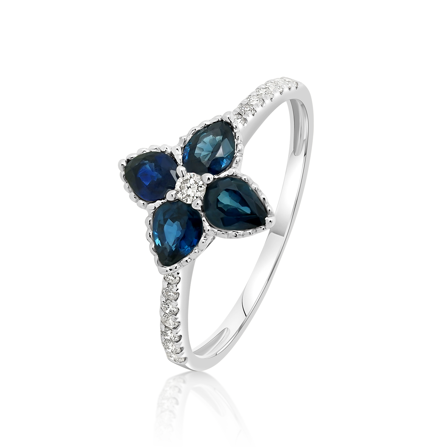 Inel din aur alb de 18K cu Safire și Diamante naturale