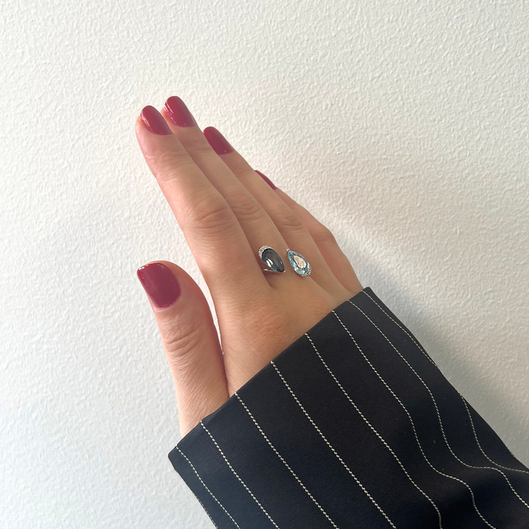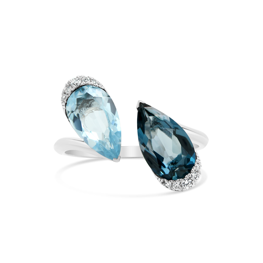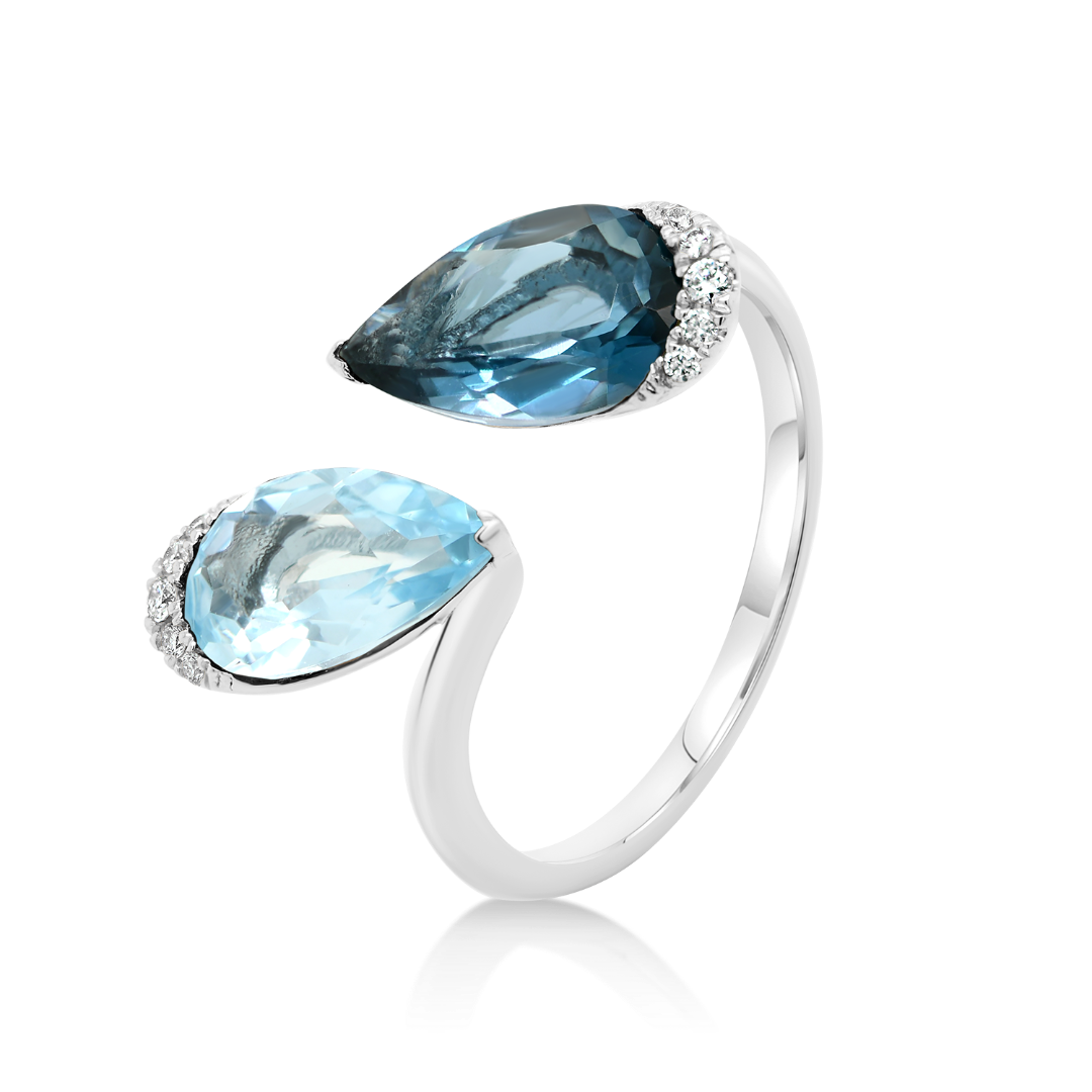 Inel din aur alb de 18K cu Blue Topaz, London Blue Topaz si Diamante naturale.
