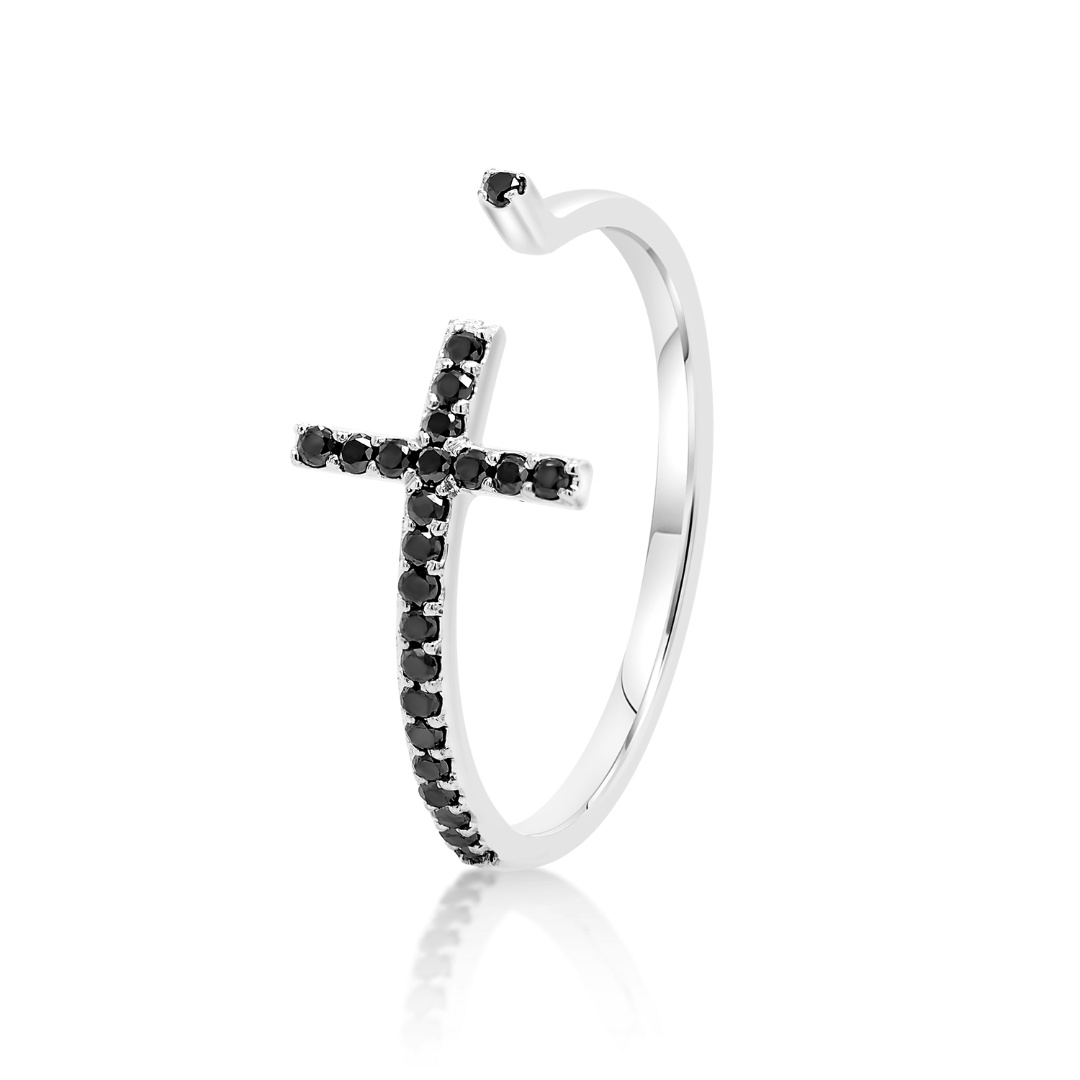 Inel din aur alb de 18K cu 23 de Diamante negre naturale.