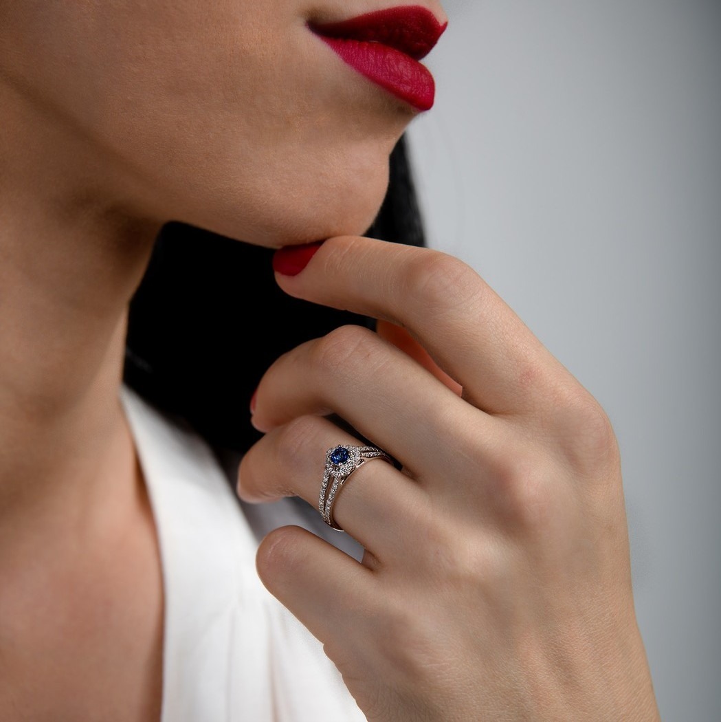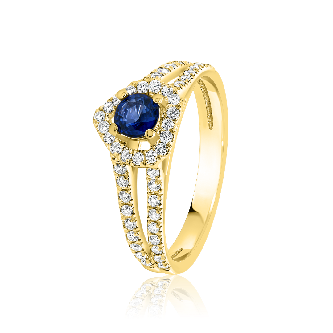Inel din aur galben de 18K cu Safir și Diamante naturale