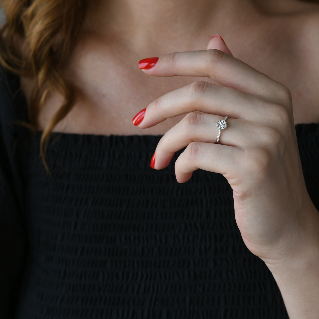 Inel de logodnă din aur alb de 18K încrustat cu Diamante naturale Round Brilliant.