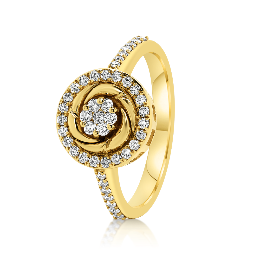 Inel din aur galben de 18K, încrustat cu Diamante naturale de 0.36ct.