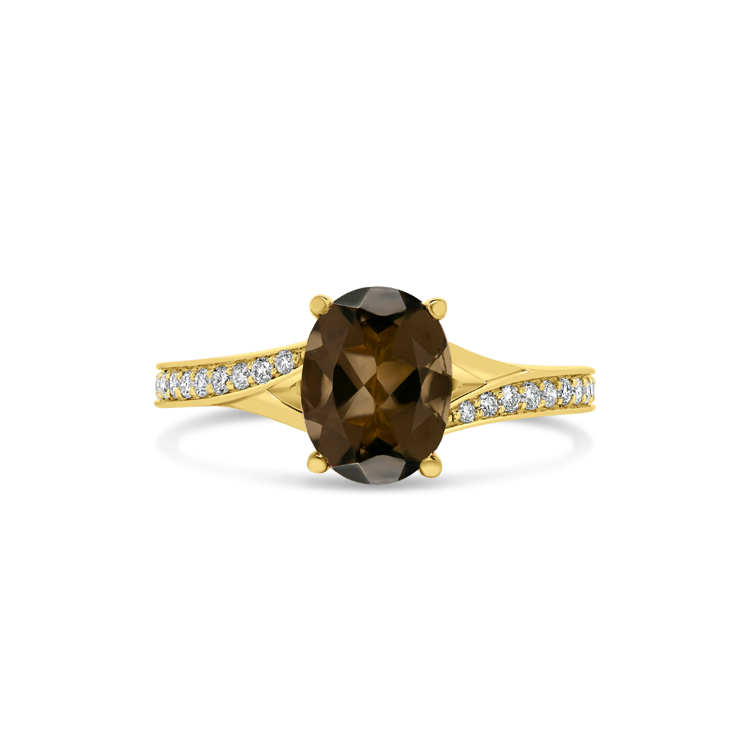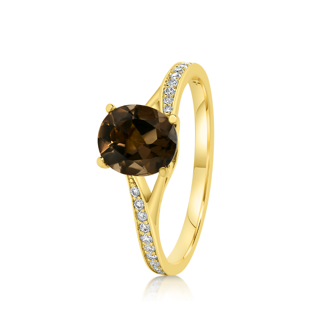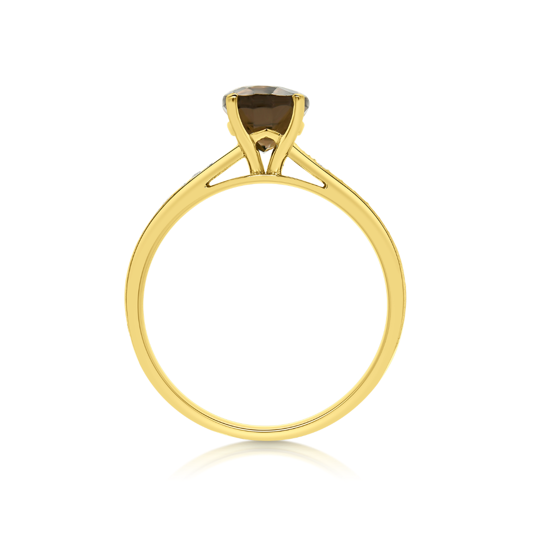 Inel din aur galben de 18K cu Diamante naturale și Smoky Quartz