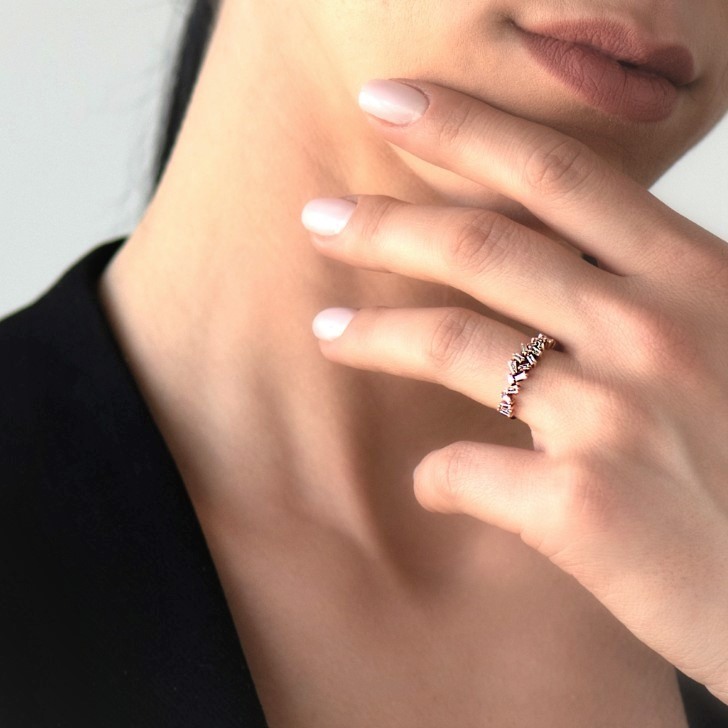 Inel din aur roz de 18K cu 15 Diamante naturale.