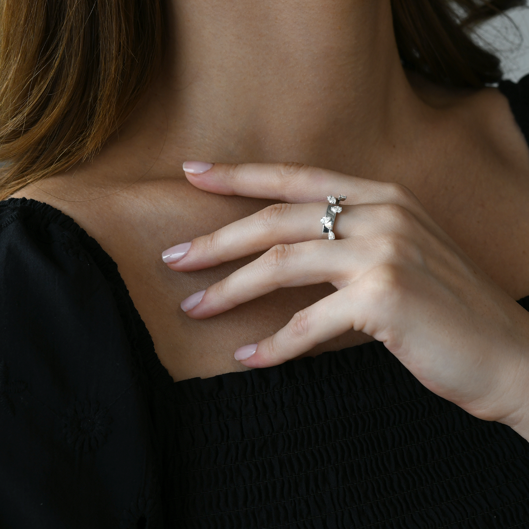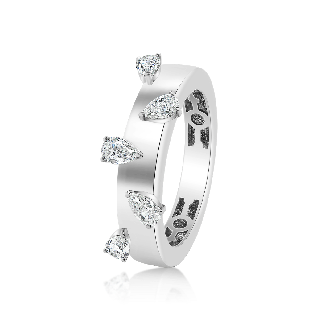 Inel din aur alb de 18K, încrustat cu 5 Diamante naturale cu o greutate totală de 0.57ct.