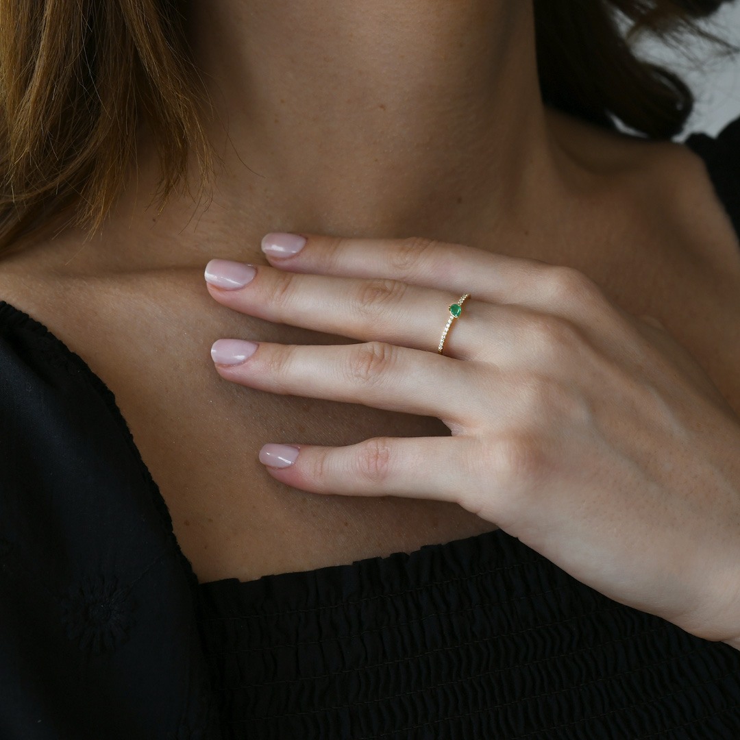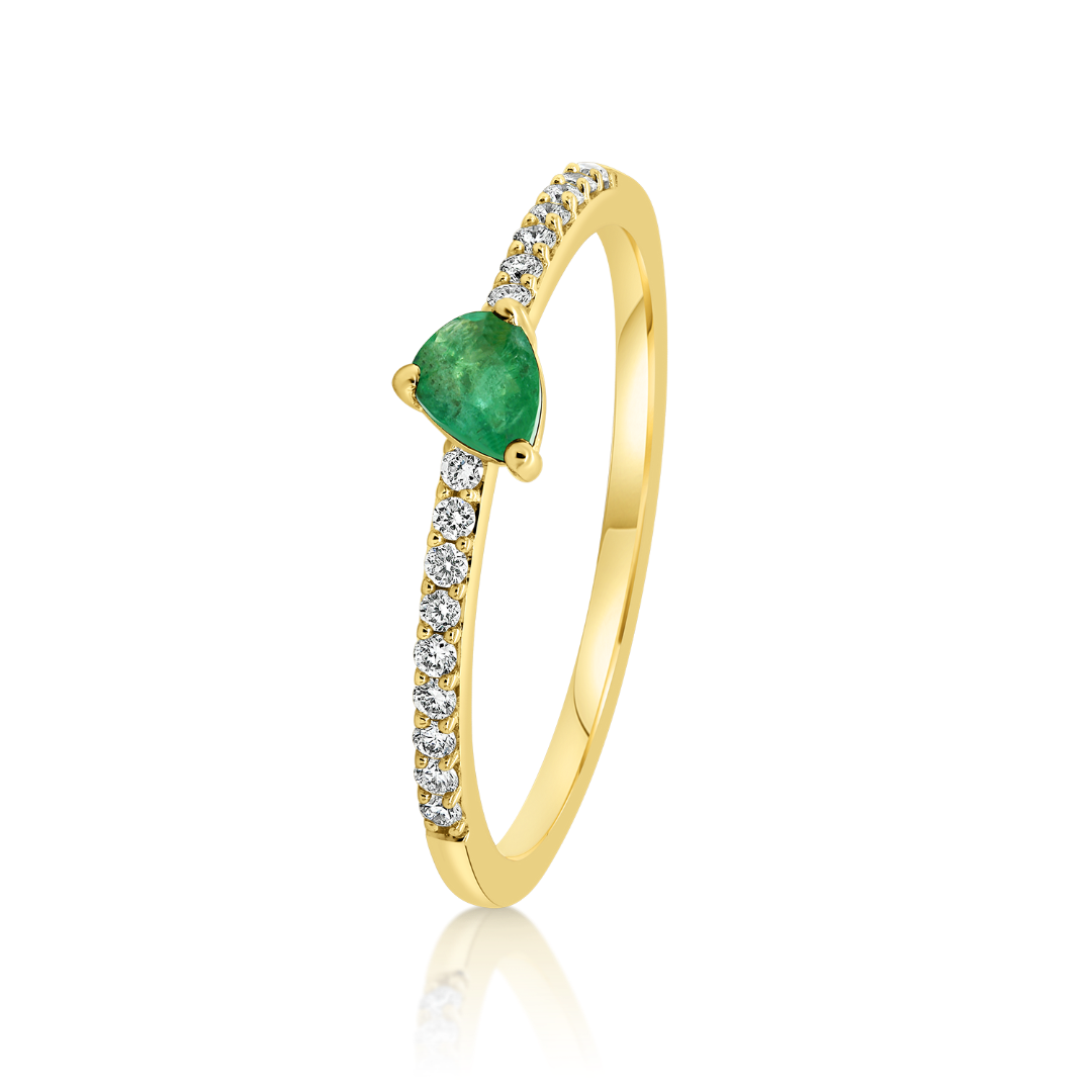 Inel din aur galben de 18K, cu Smarald și Diamante naturale