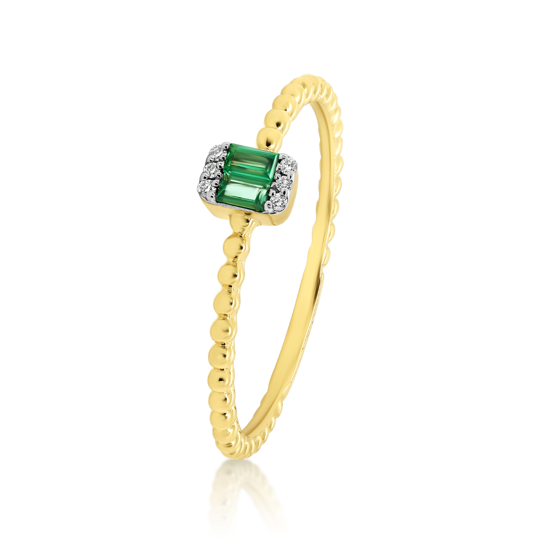 Inel din aur galben de 18K, cu Diamante și Smaralde