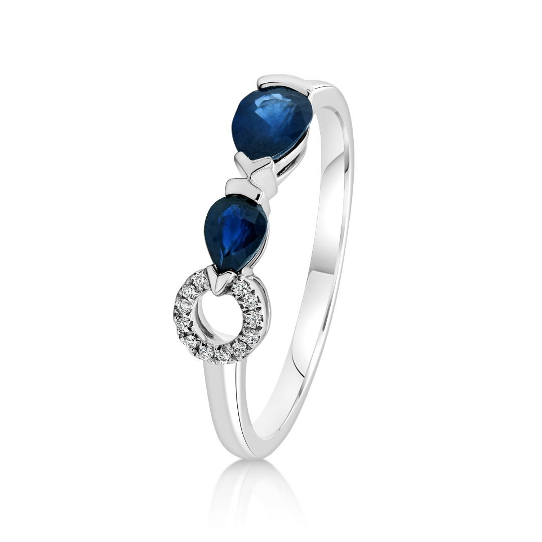 Inel din aur alb de 18K cu Safire și Diamante naturale