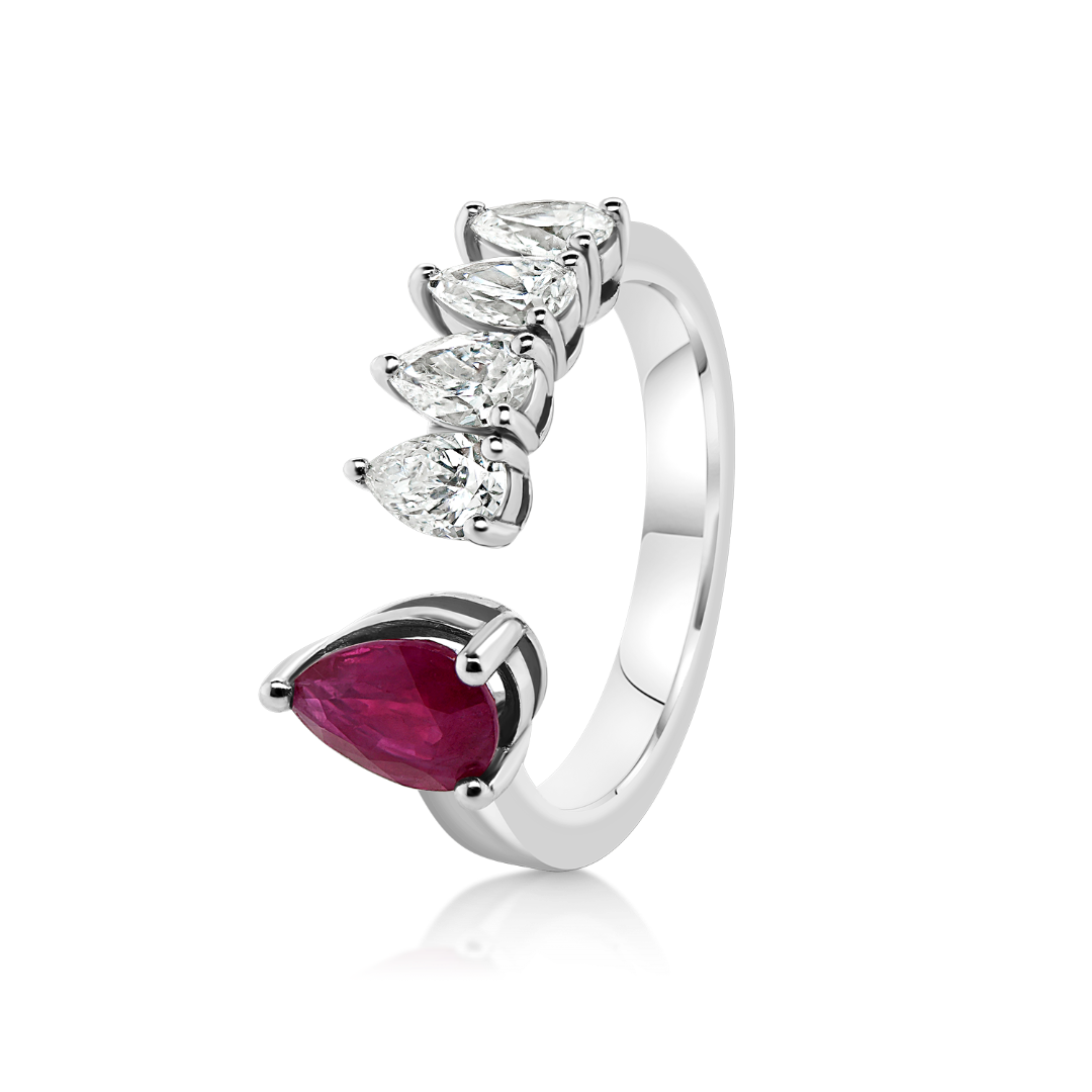Inel din aur alb de 18K cu Rubin și Diamante naturale