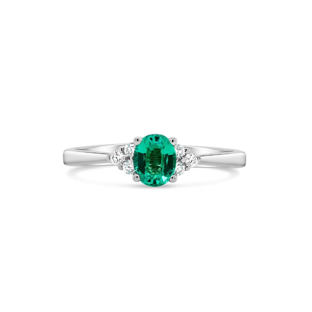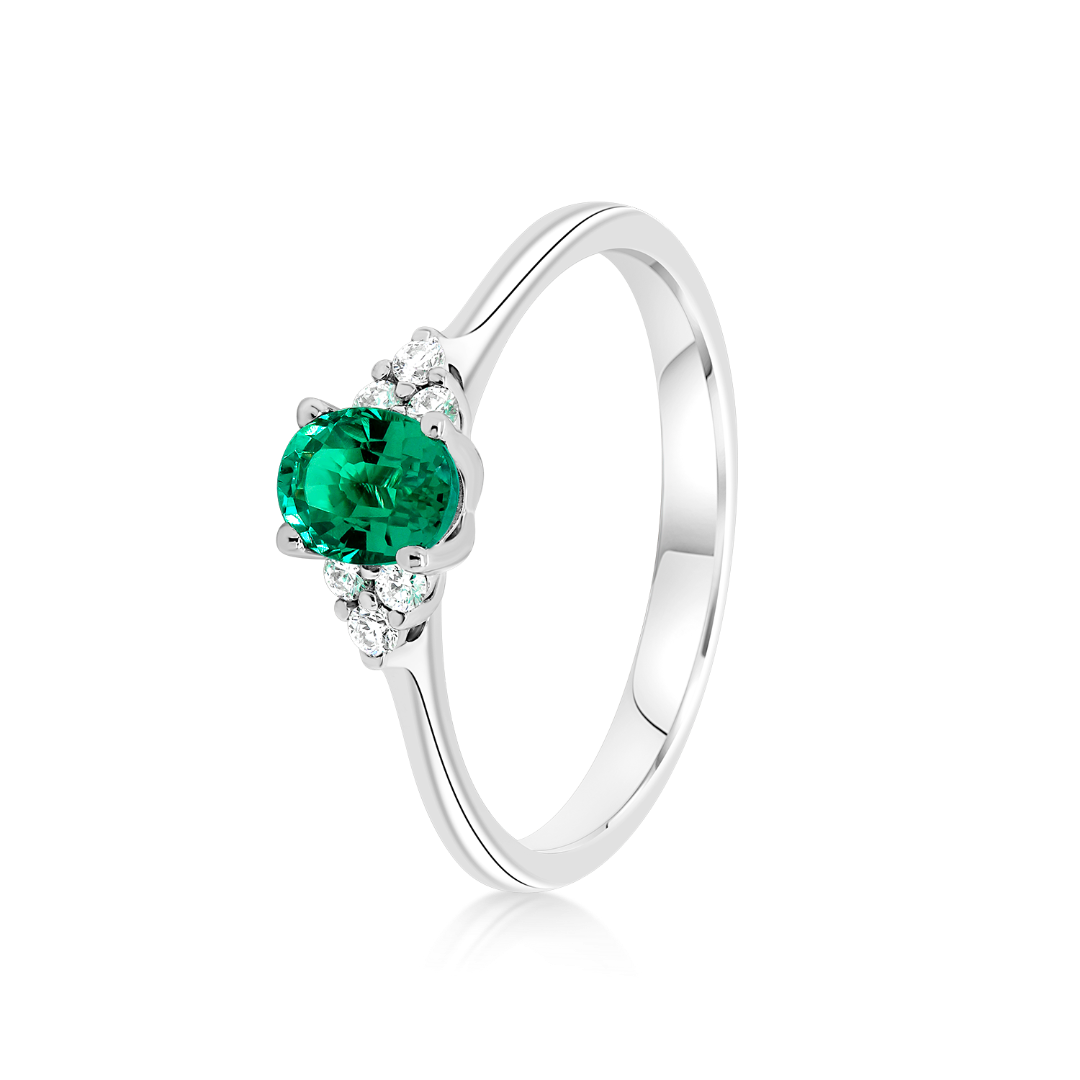 Inel din aur alb de 18K cu Smarald și Diamante naturale