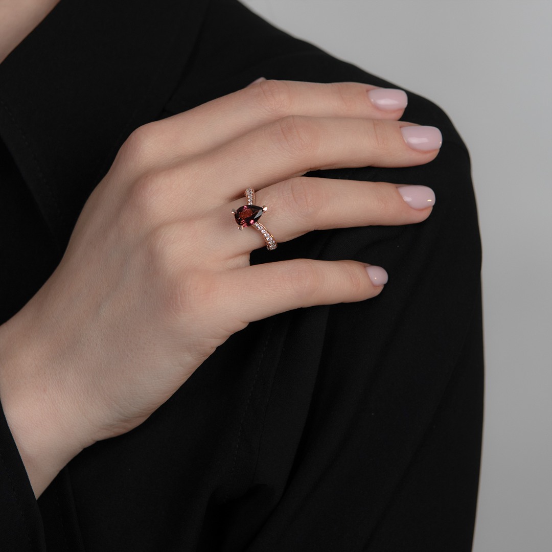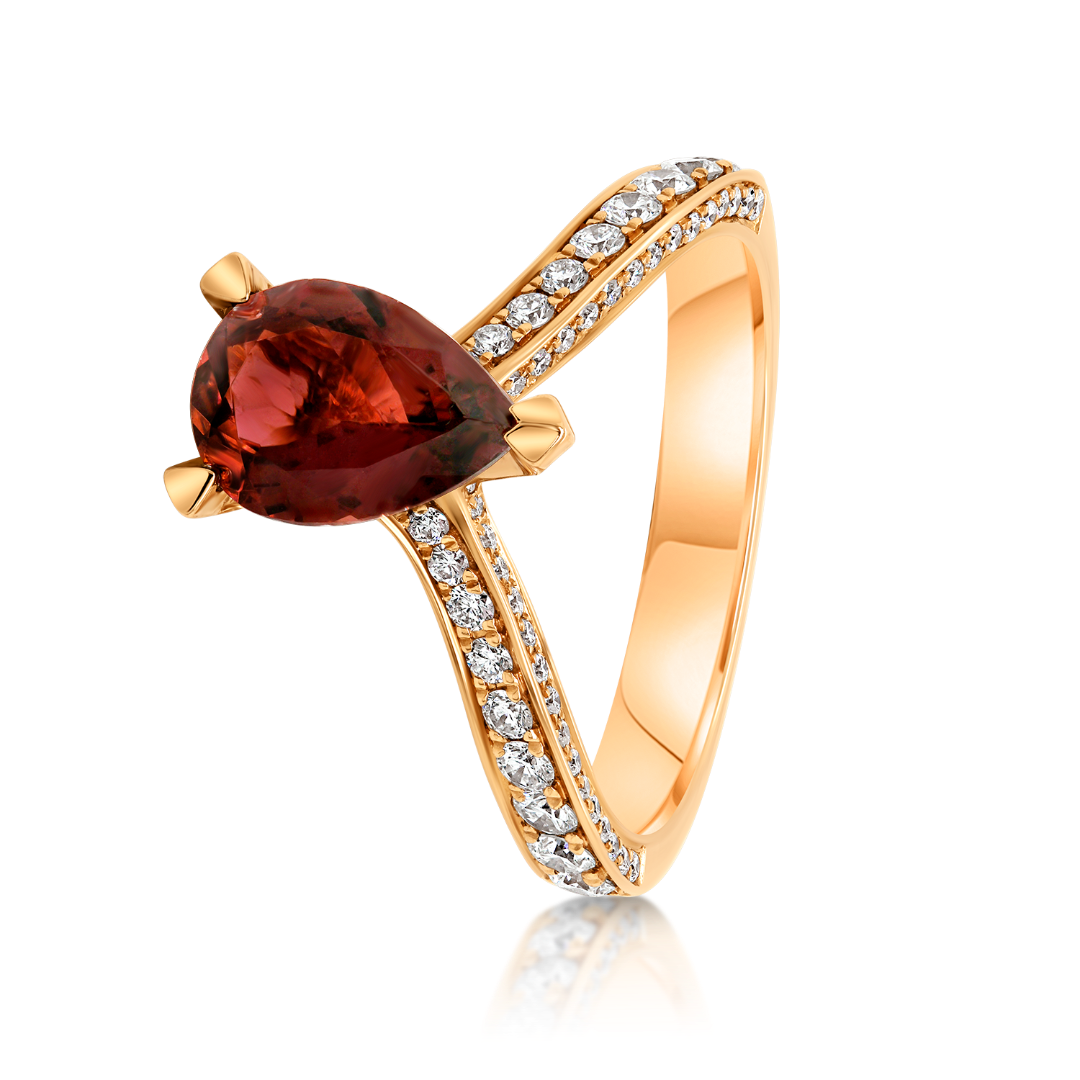 Inel din aur roz de 18K cu Turmalin și Diamante naturale