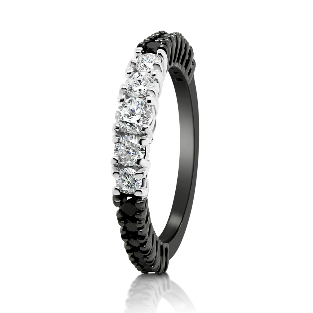 Inel din aur de 18K cu Rodiu negru, încrustat cu 5 Diamante incolore Round Brilliant de 0.42ct. și 14 Diamante negre cu o greutate de 0.33ct.