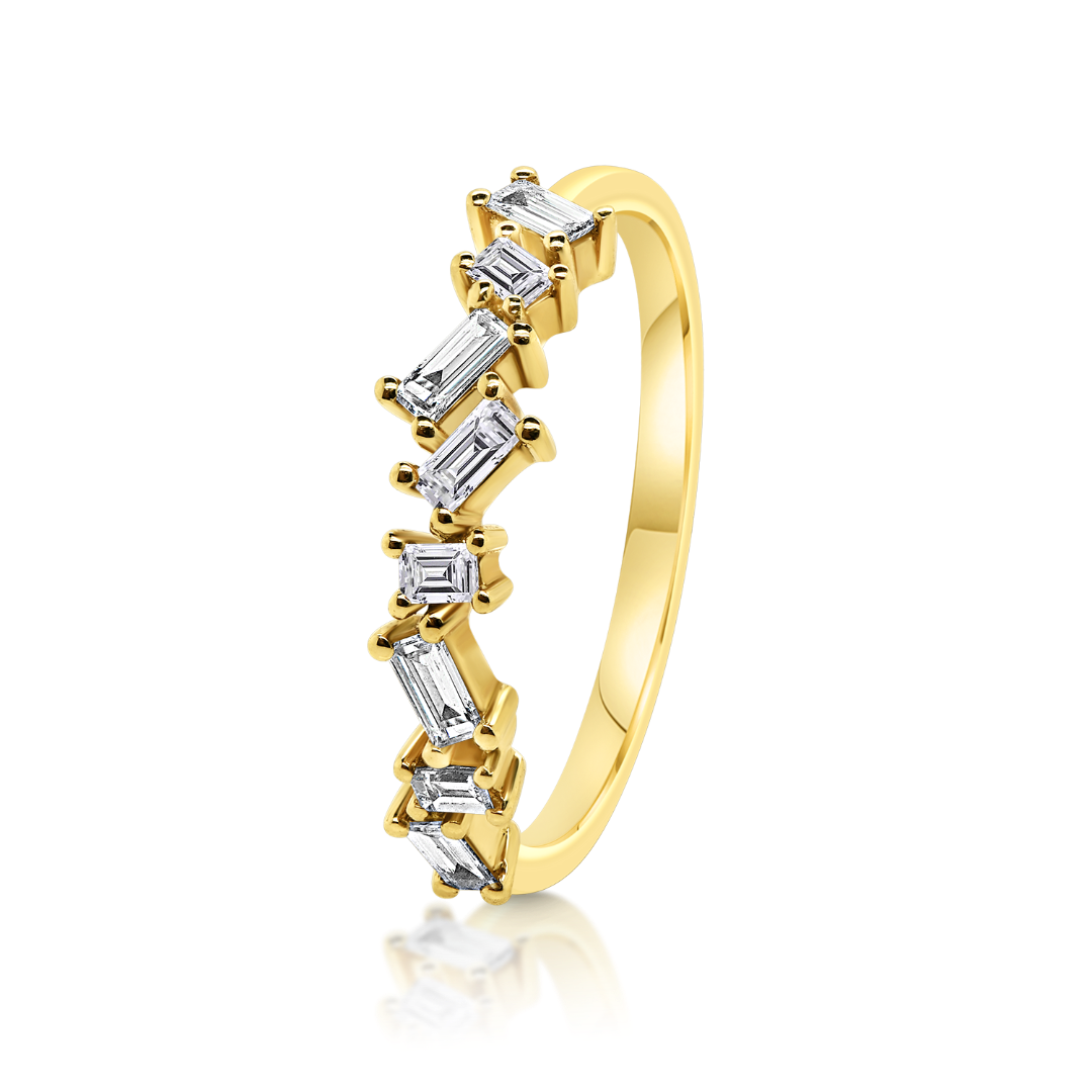 Inel din aur galben de 18K, încrustat cu 8 Diamante baghetă de 0.25ct.