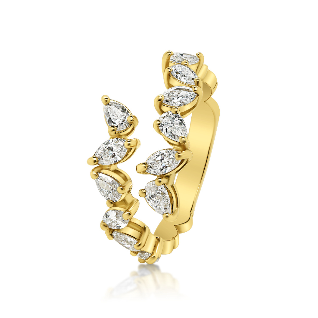 Inel din aur galben de 18K încrustat cu Diamante naturale Pear și Marquise de 1.04ct.