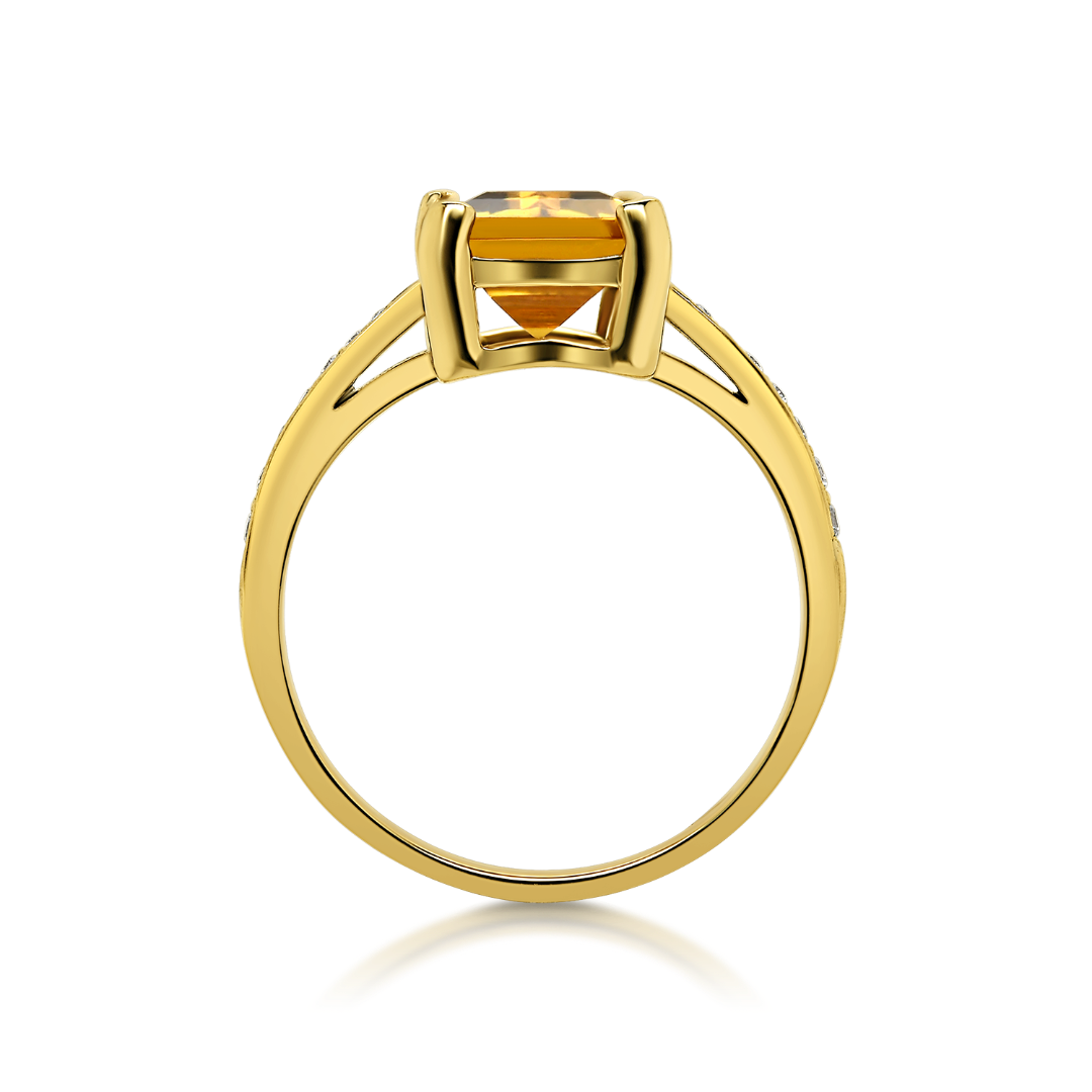 Inel din aur galben de 14K cu Citrin și Diamante naturale
