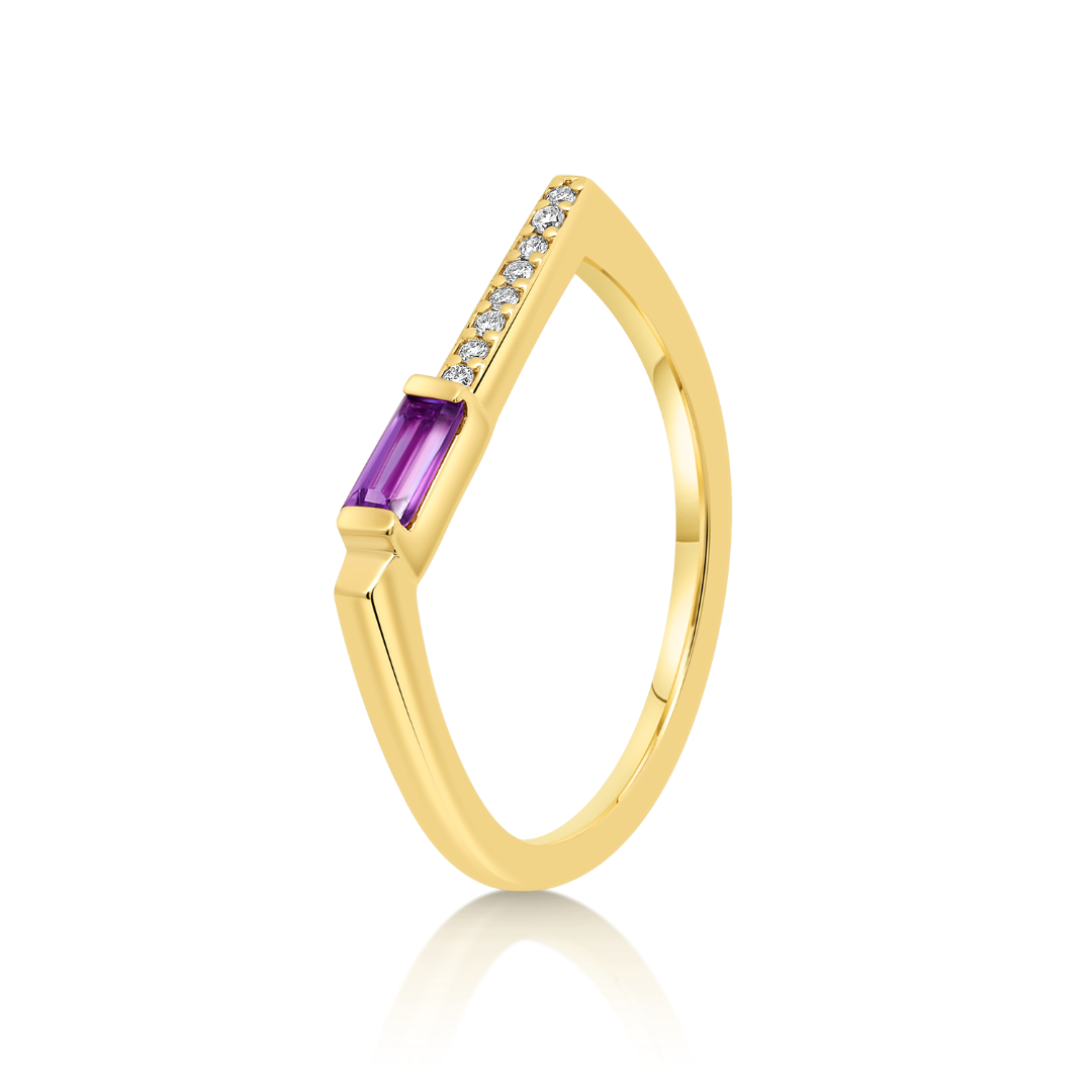 Inel din aur galben de 14K cu Ametist și Diamante naturale.