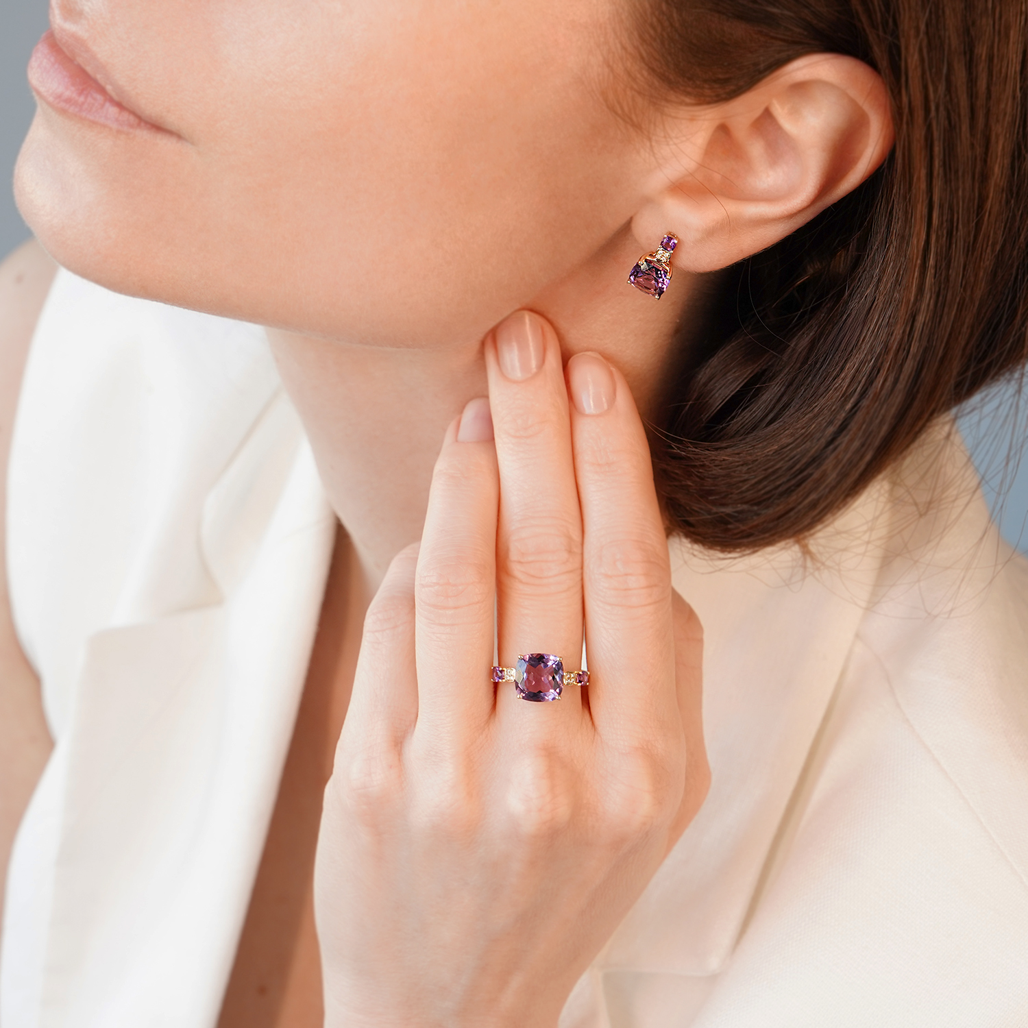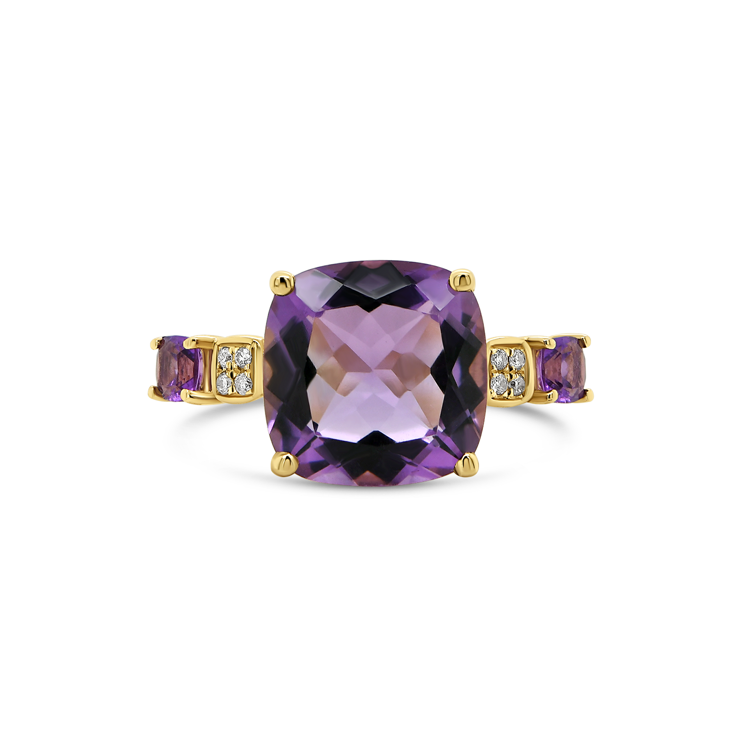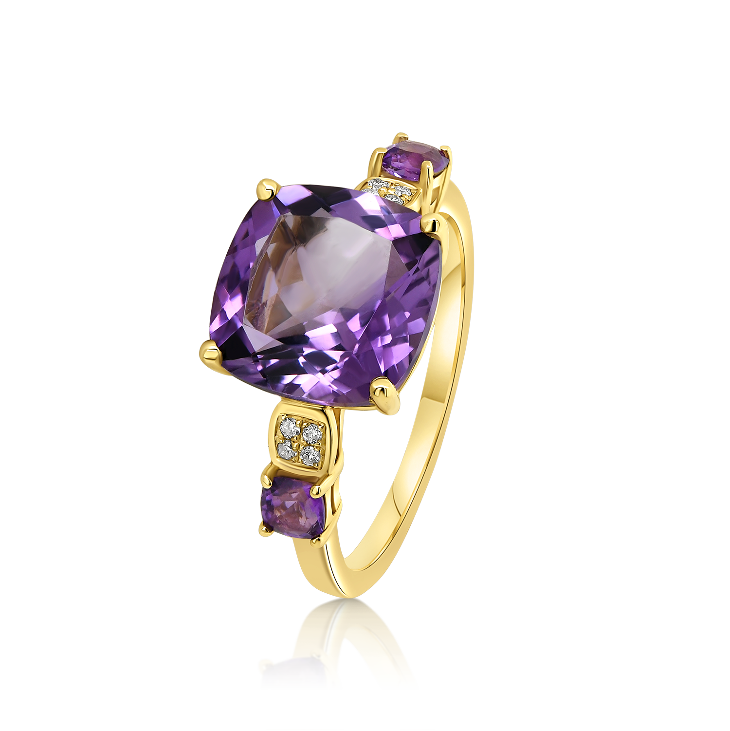Inel din aur galben de 14K cu Ametiste și Diamante naturale