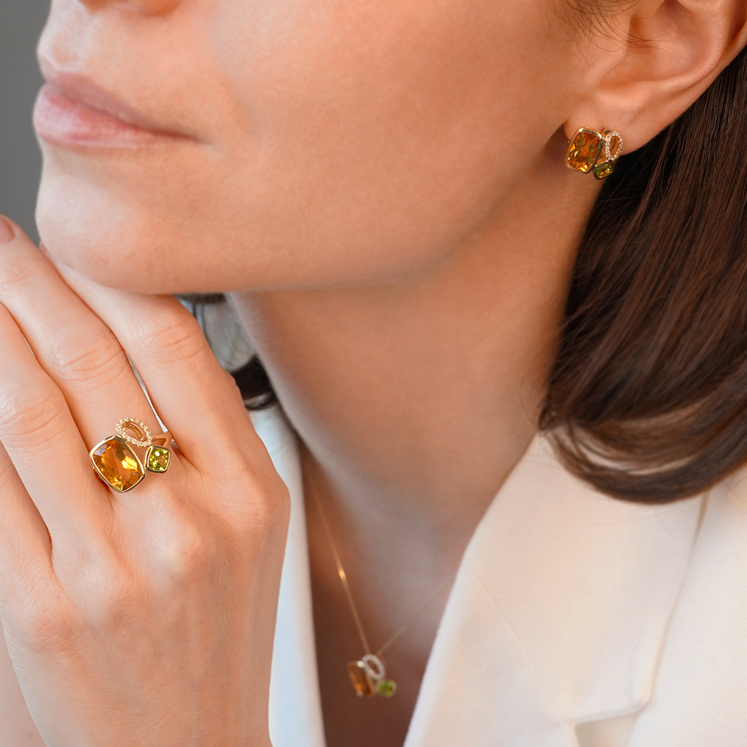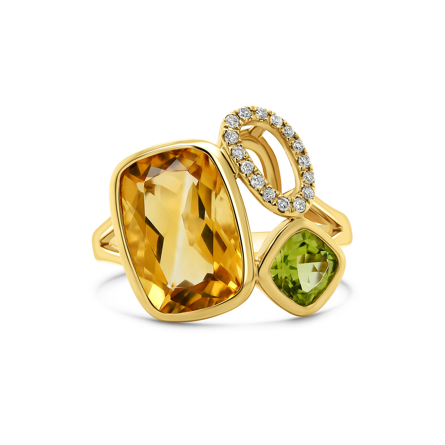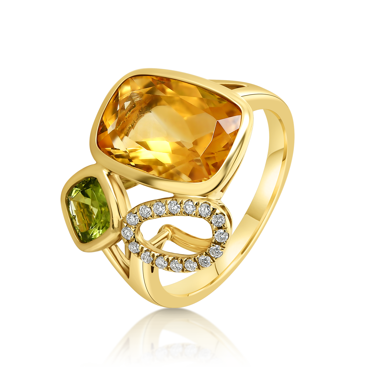 Inel din aur galben de 14K cu Citrin, Peridot și Diamante naturale