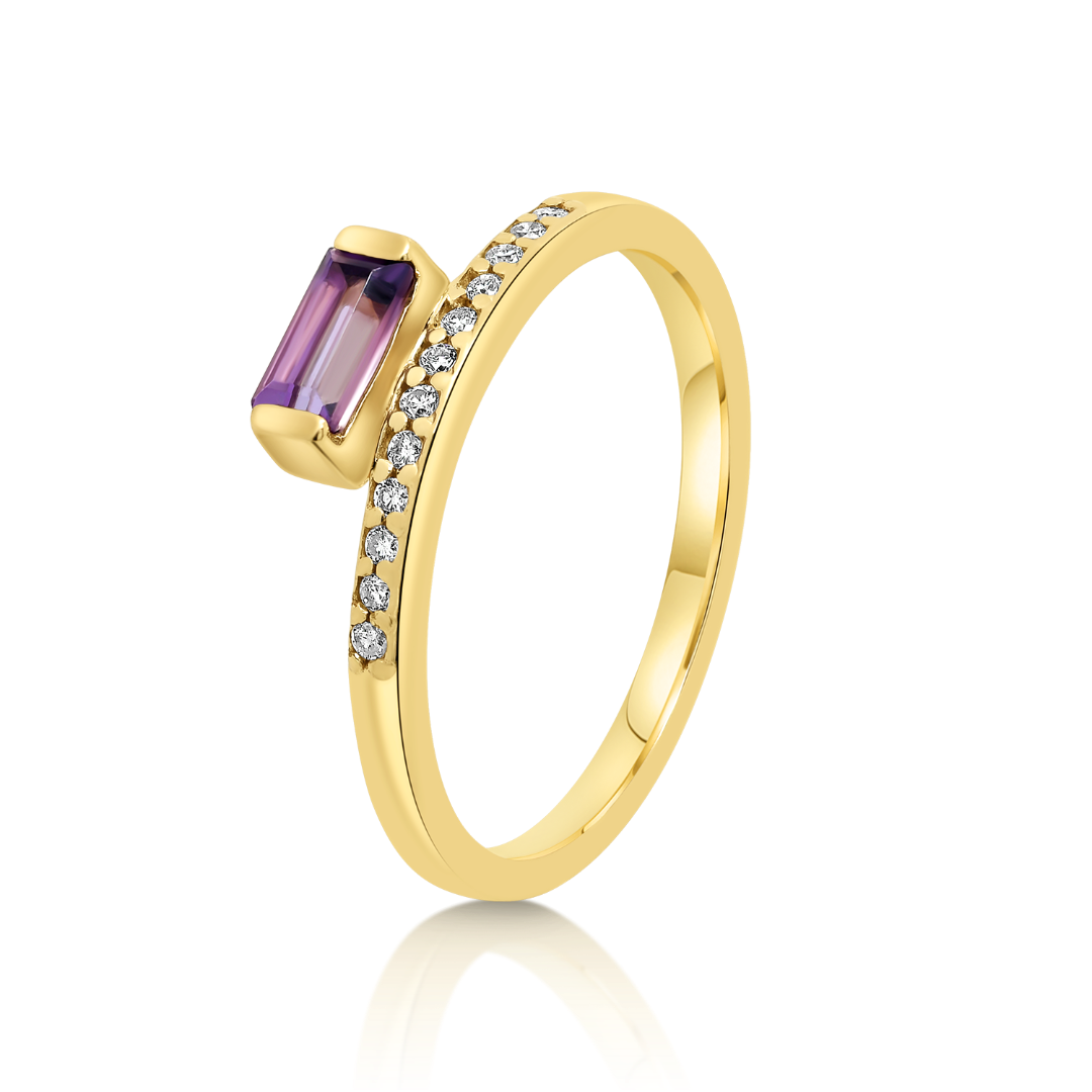 Inel din aur galben de 14K cu Diamante naturale şi Ametist