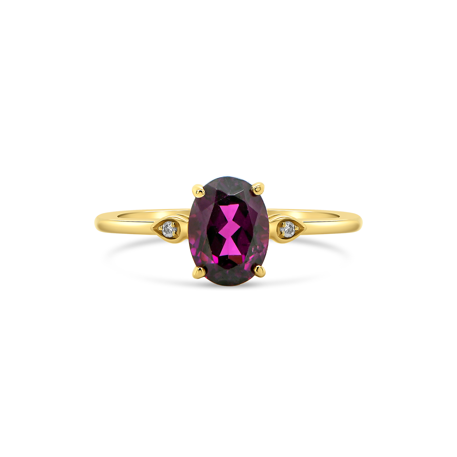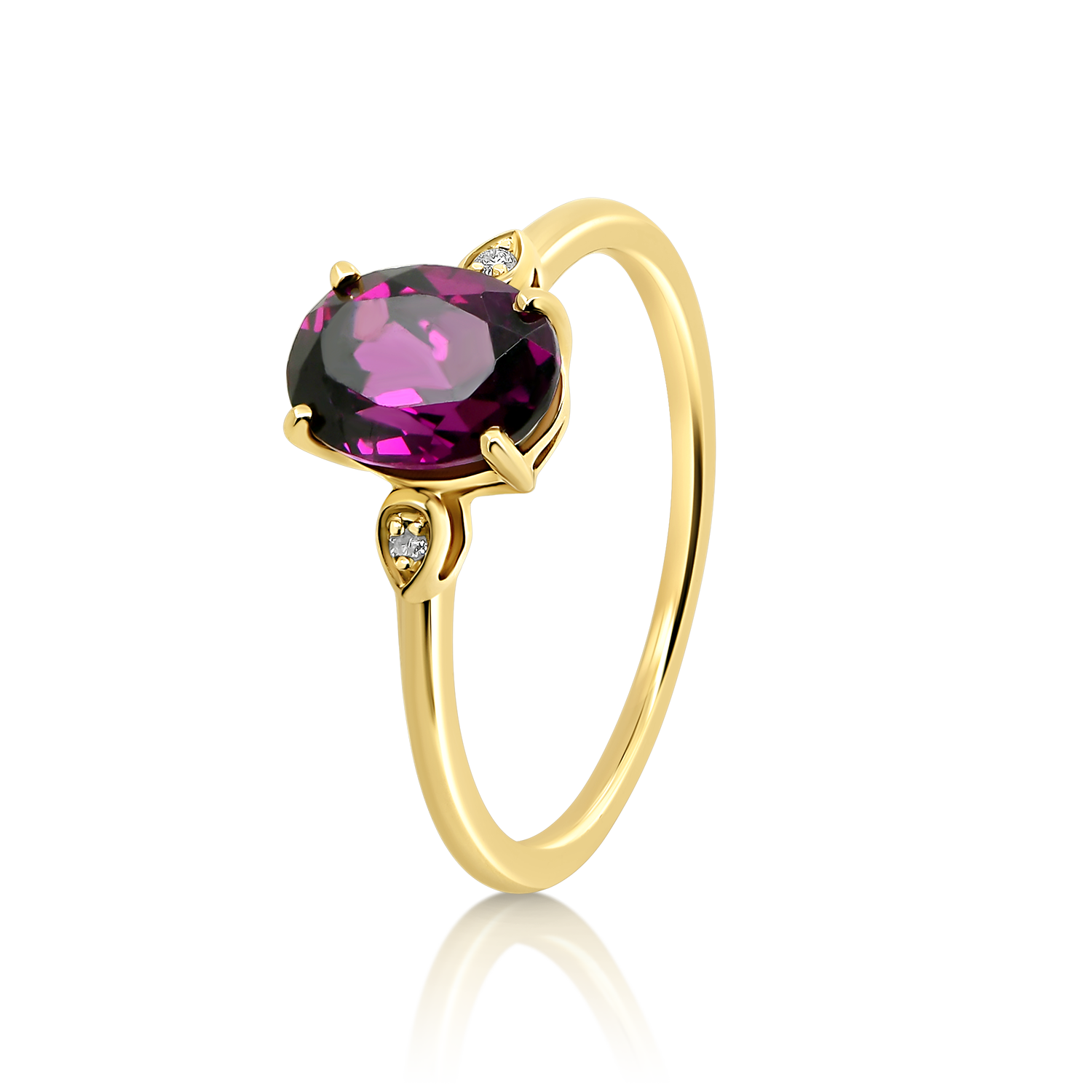 Inel din aur galben de 14K cu Rodolit și Diamante naturale