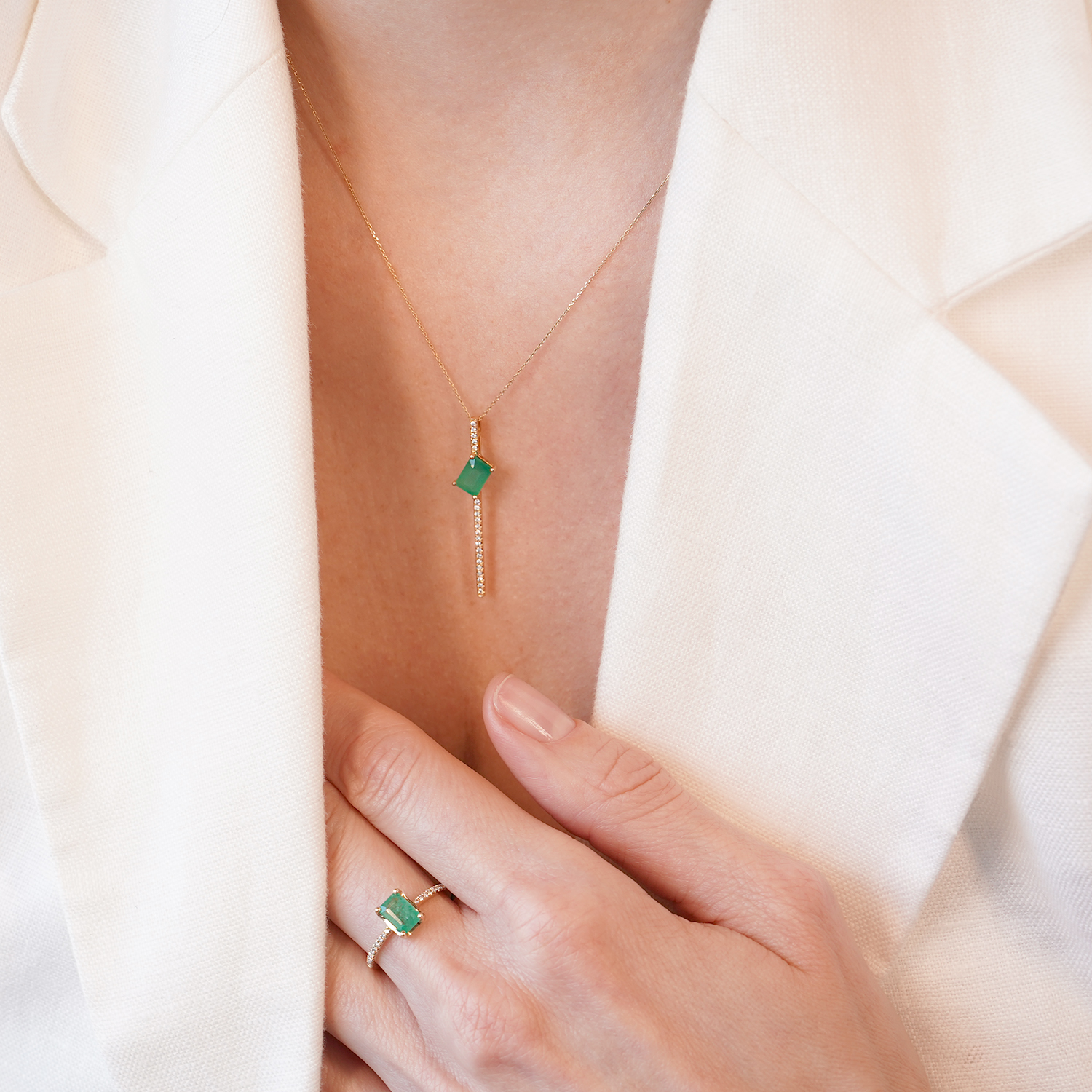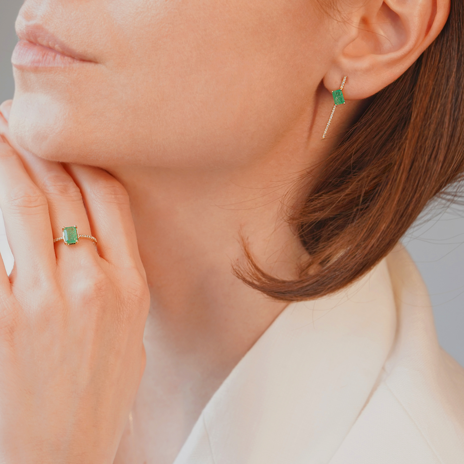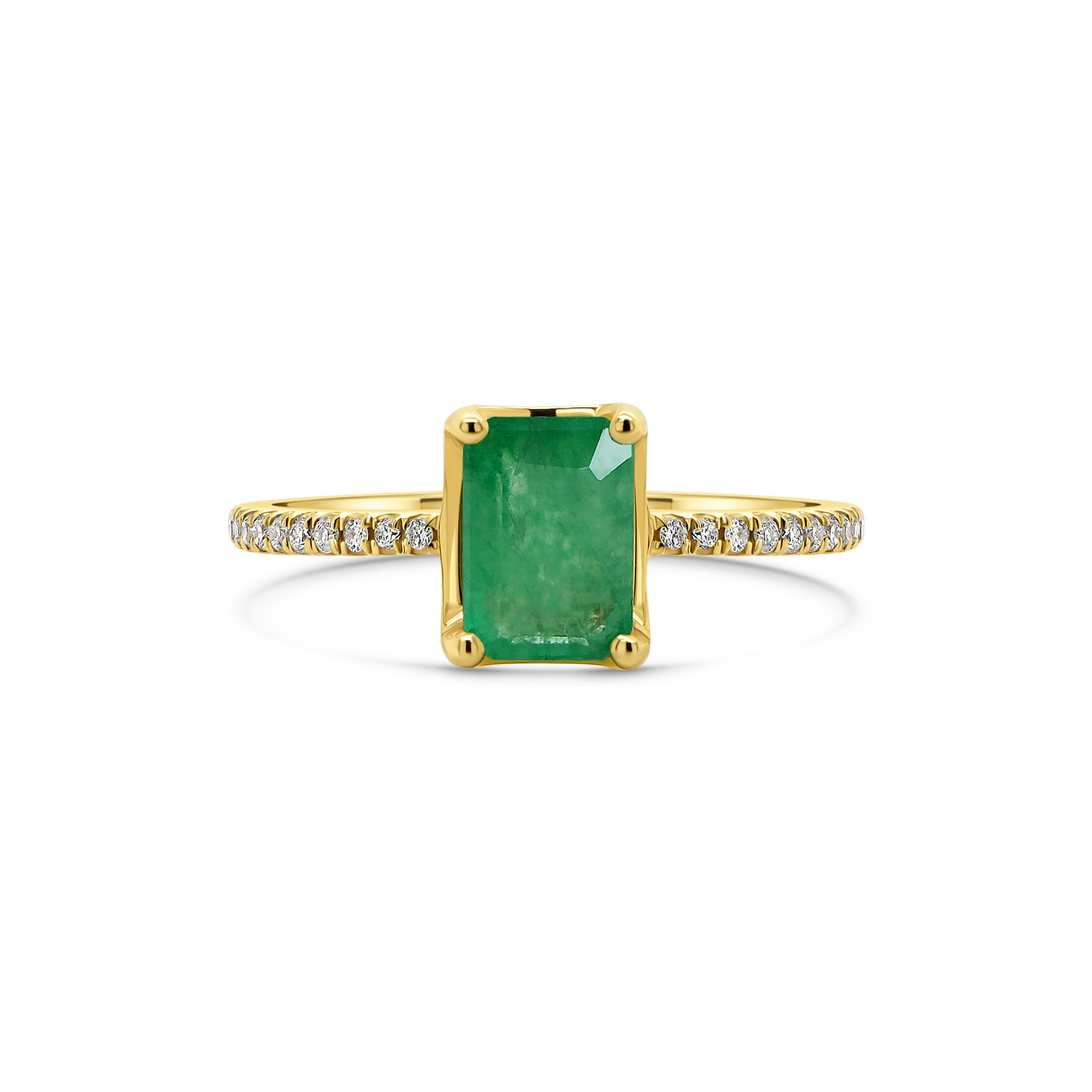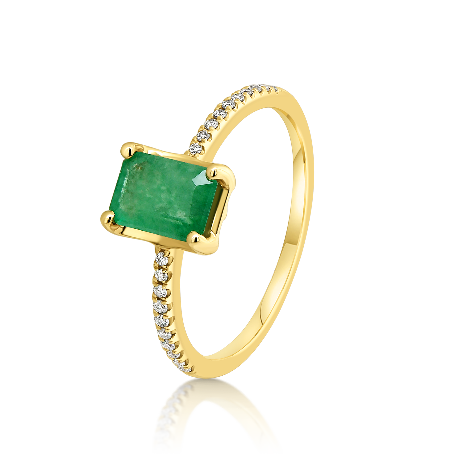 Inel din aur galben de 14K cu Smarald și Diamante naturale