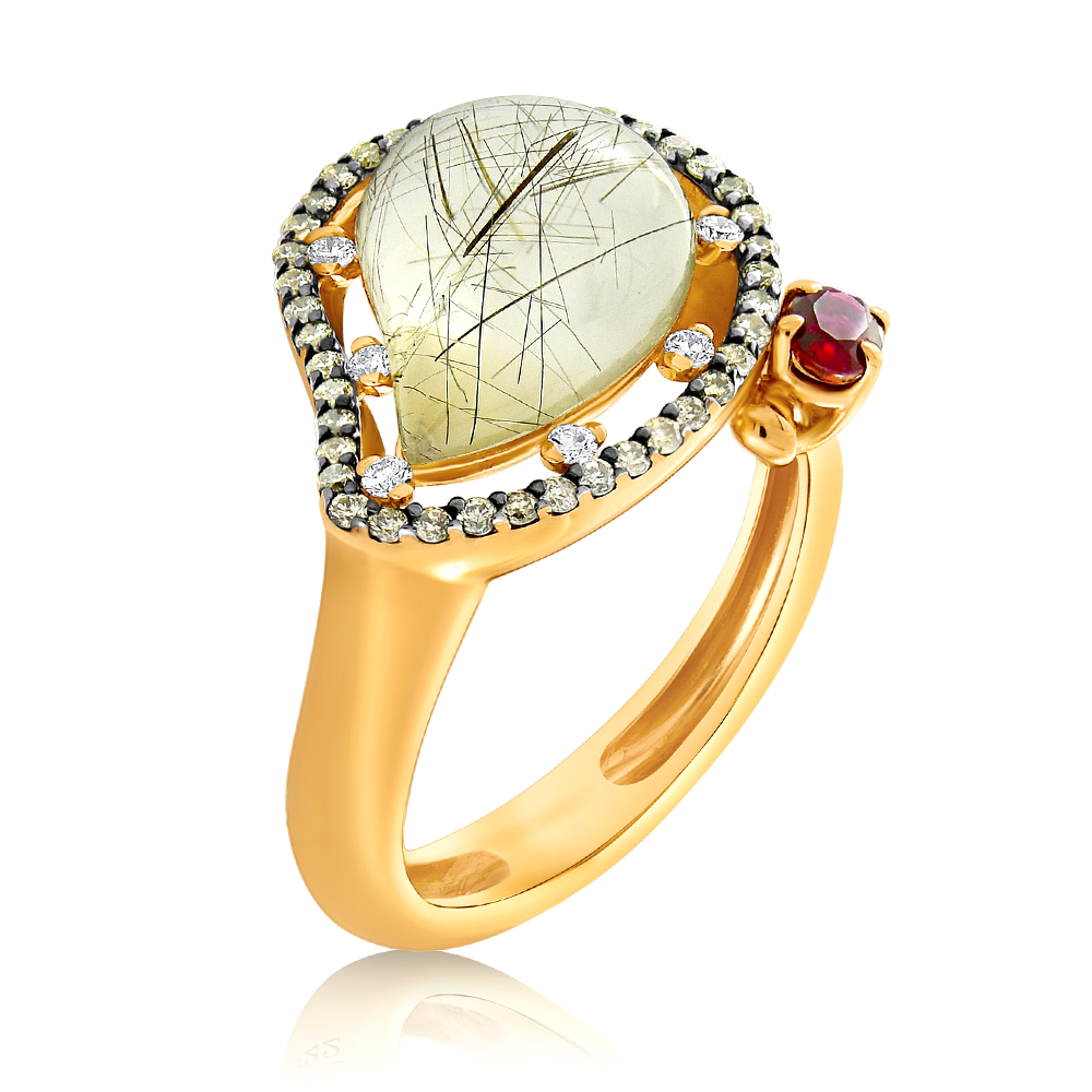Inel din aur roz de 18K cu Diamante naturale, Rubin și Quartz rutilat