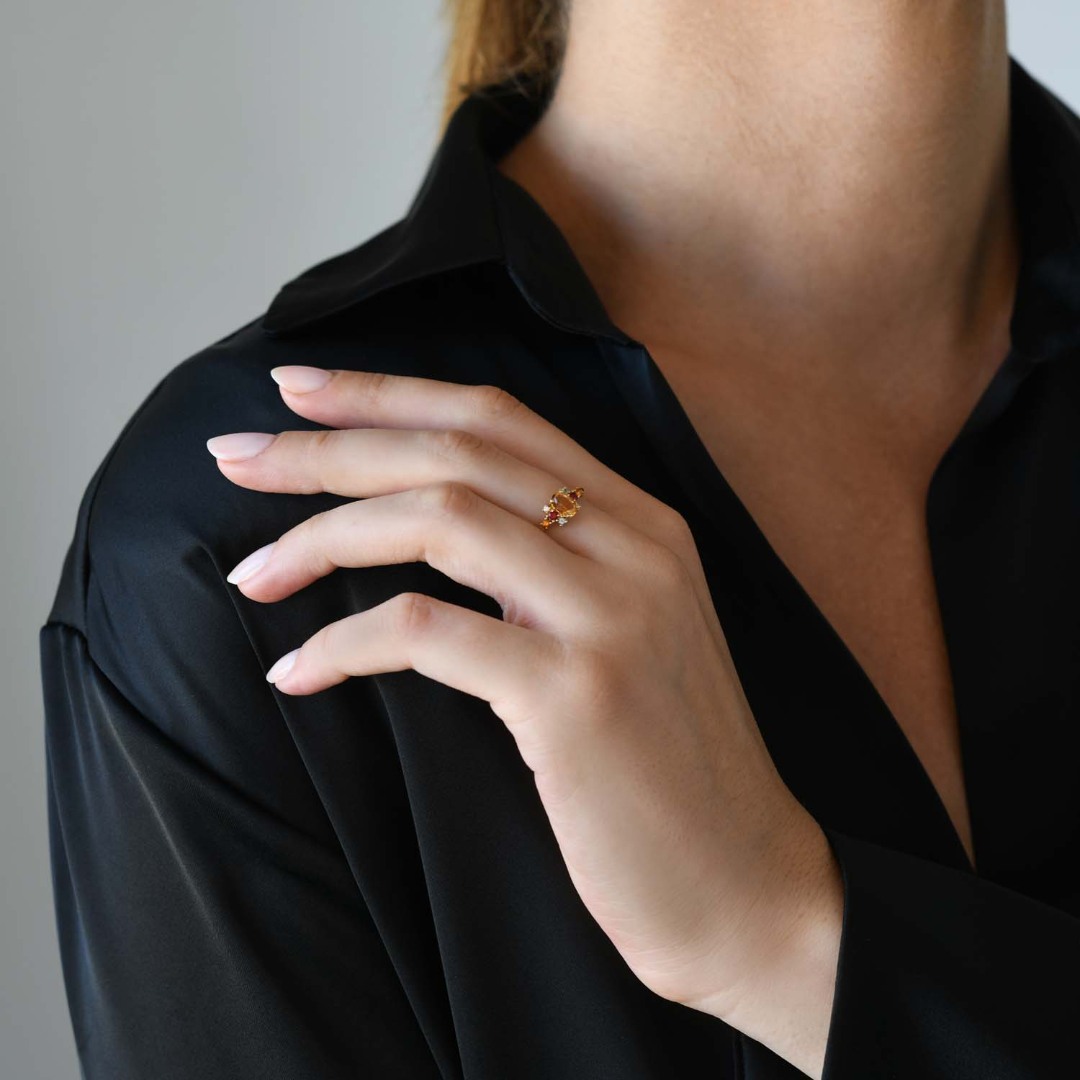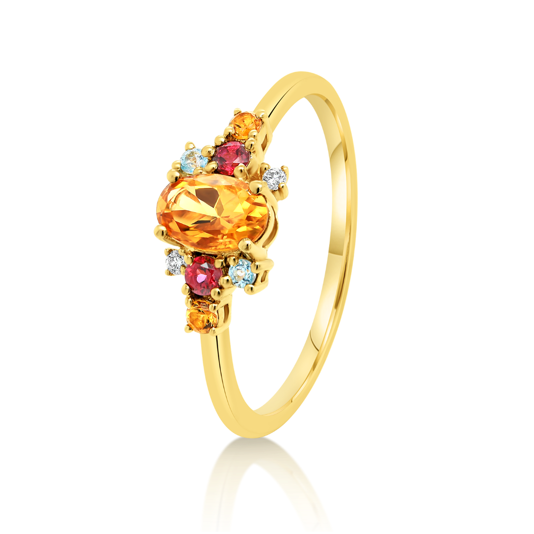 Inel din aur galben de 18K cu Diamante naturale, Citrin și Topaz