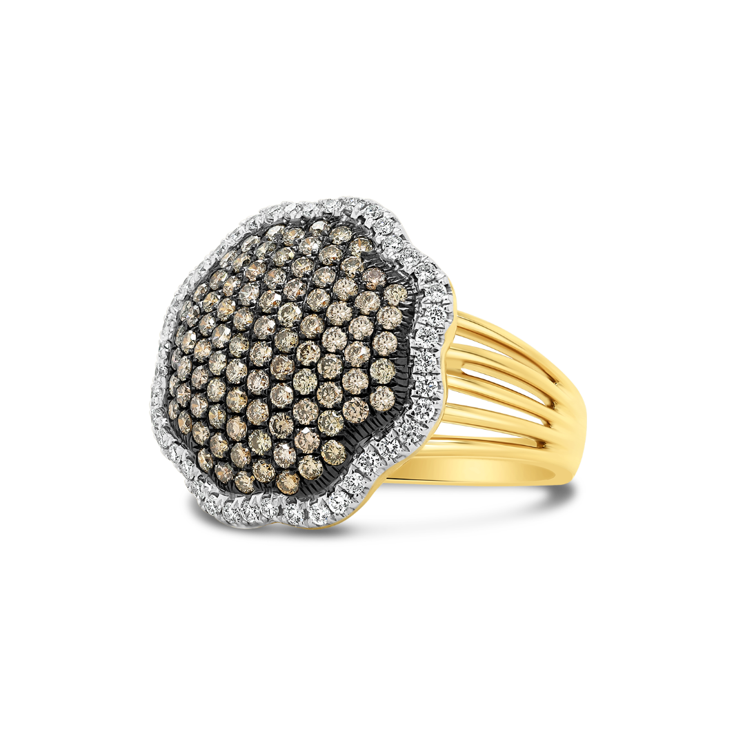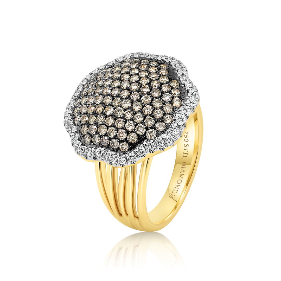 Inel din aur galben de 18K, încrustat cu 42 de Diamante incolore de 0.34ct. și 92 de Diamante Champagne de 1.14ct.