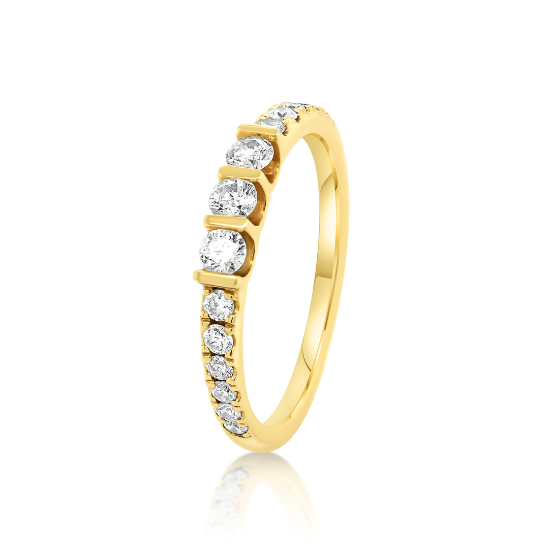 Inel din aur galben de 14K cu 15 Diamante naturale Round Brilliant de 0.48ct.