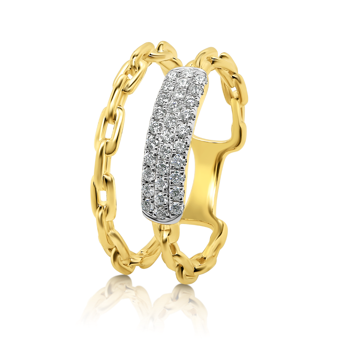 Inel cu șină dublă din aur galben de 18K, cu element încrustat cu 31 de Diamante Round Brilliant.