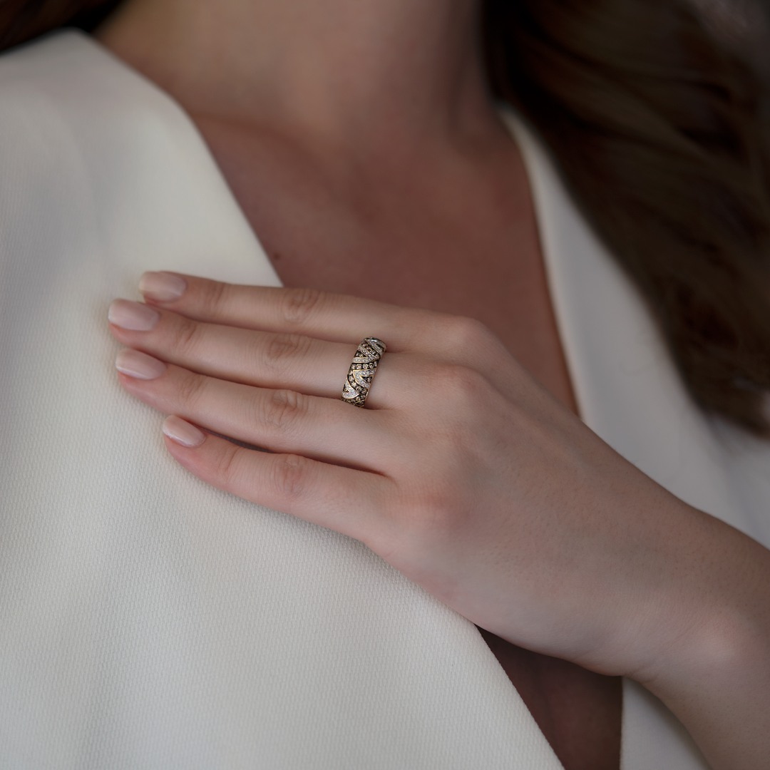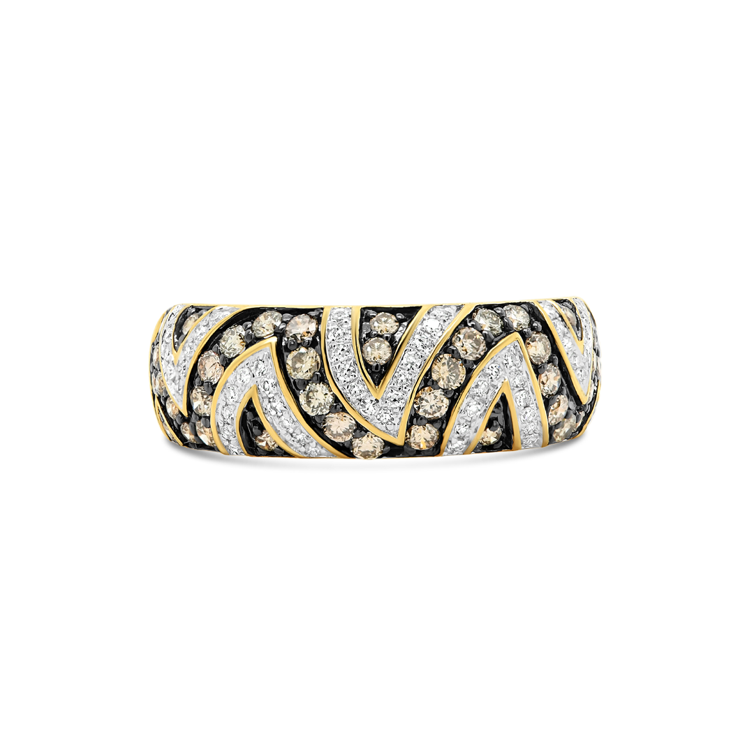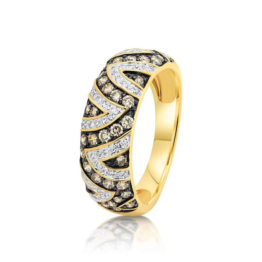 Inel din aur galben de 18K cu Diamante Round Brilliant incolore și Champagne.