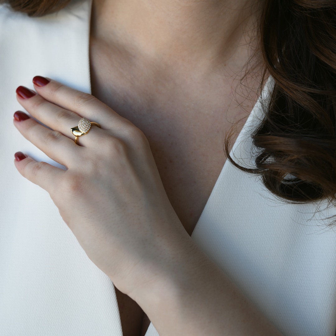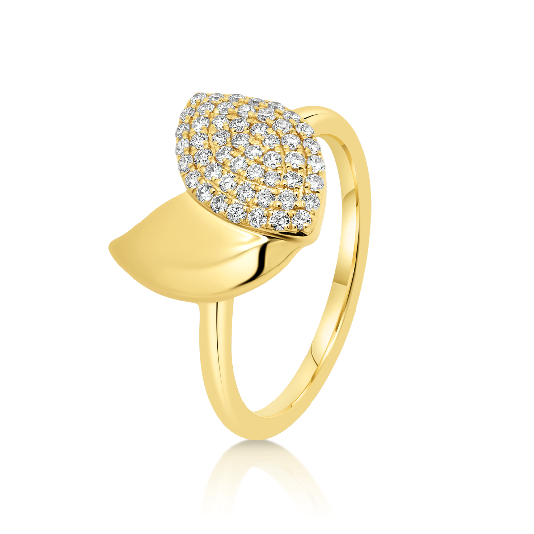 Inel din aur galben de 18K cu element încrustat în Diamante naturale round brilliant.