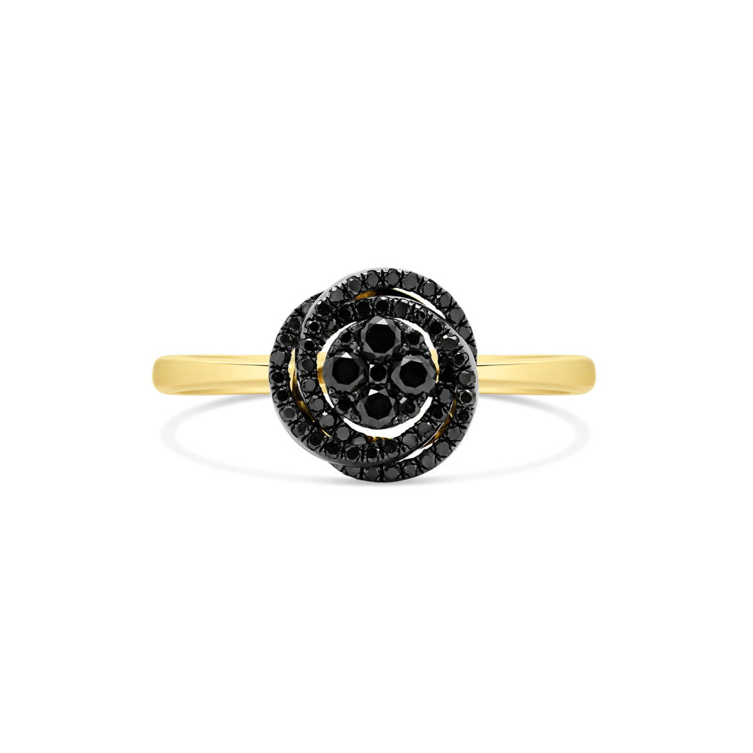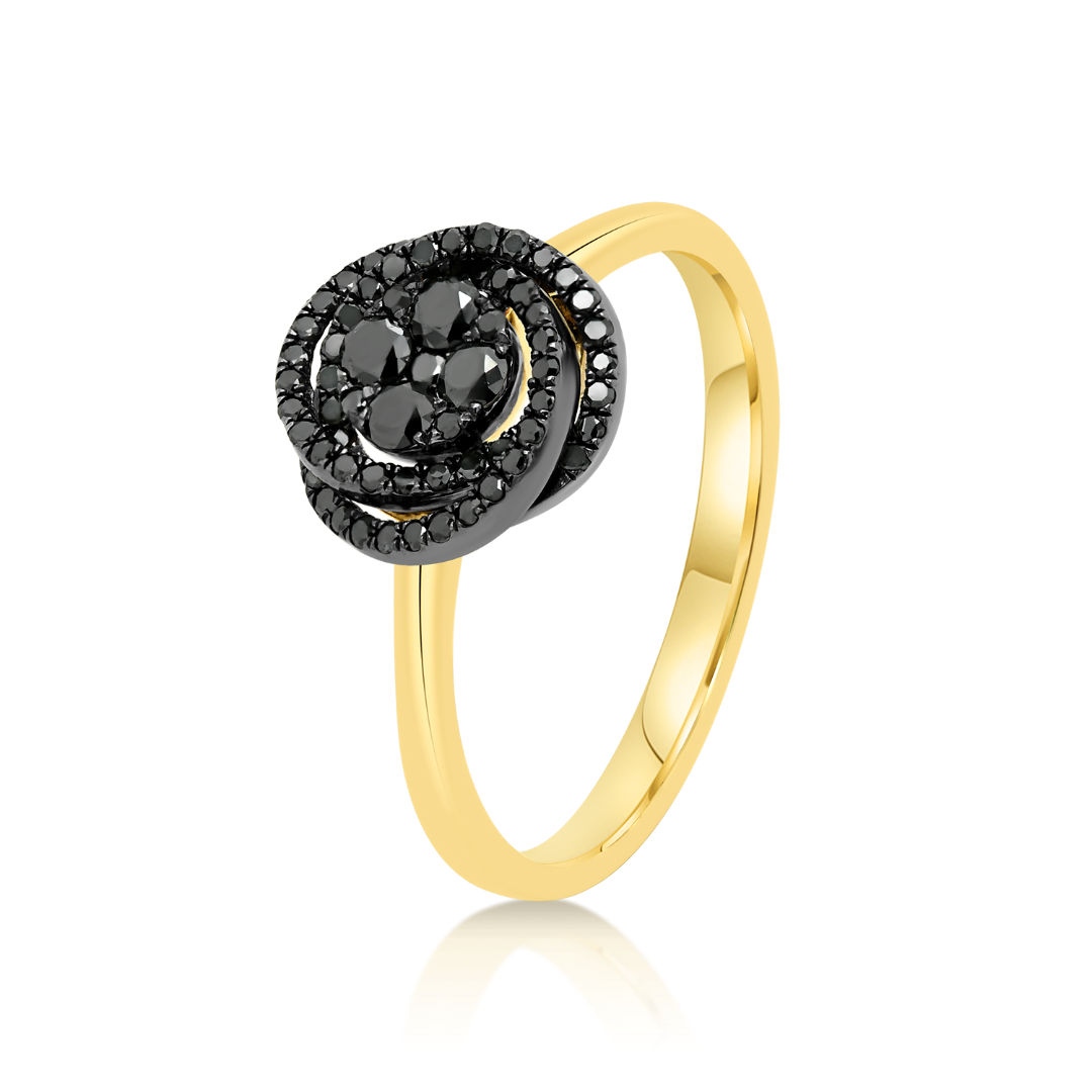 Inel din aur galben de 18K cu Rodiu negru și Diamante naturale
