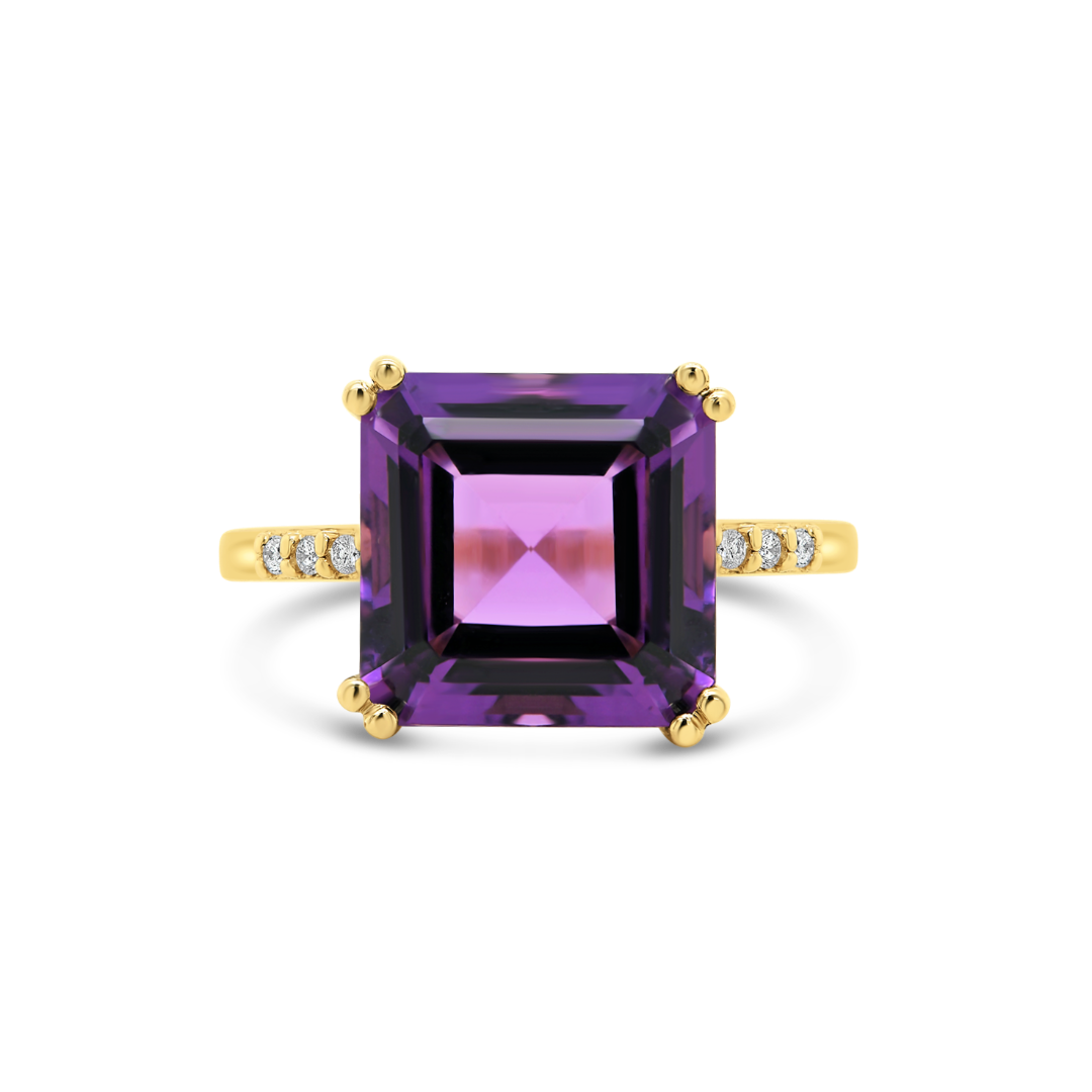 Inel din aur galben de 14K, cu un Ametist claritate AAA și Diamante Round Brilliant de 0.10ct.