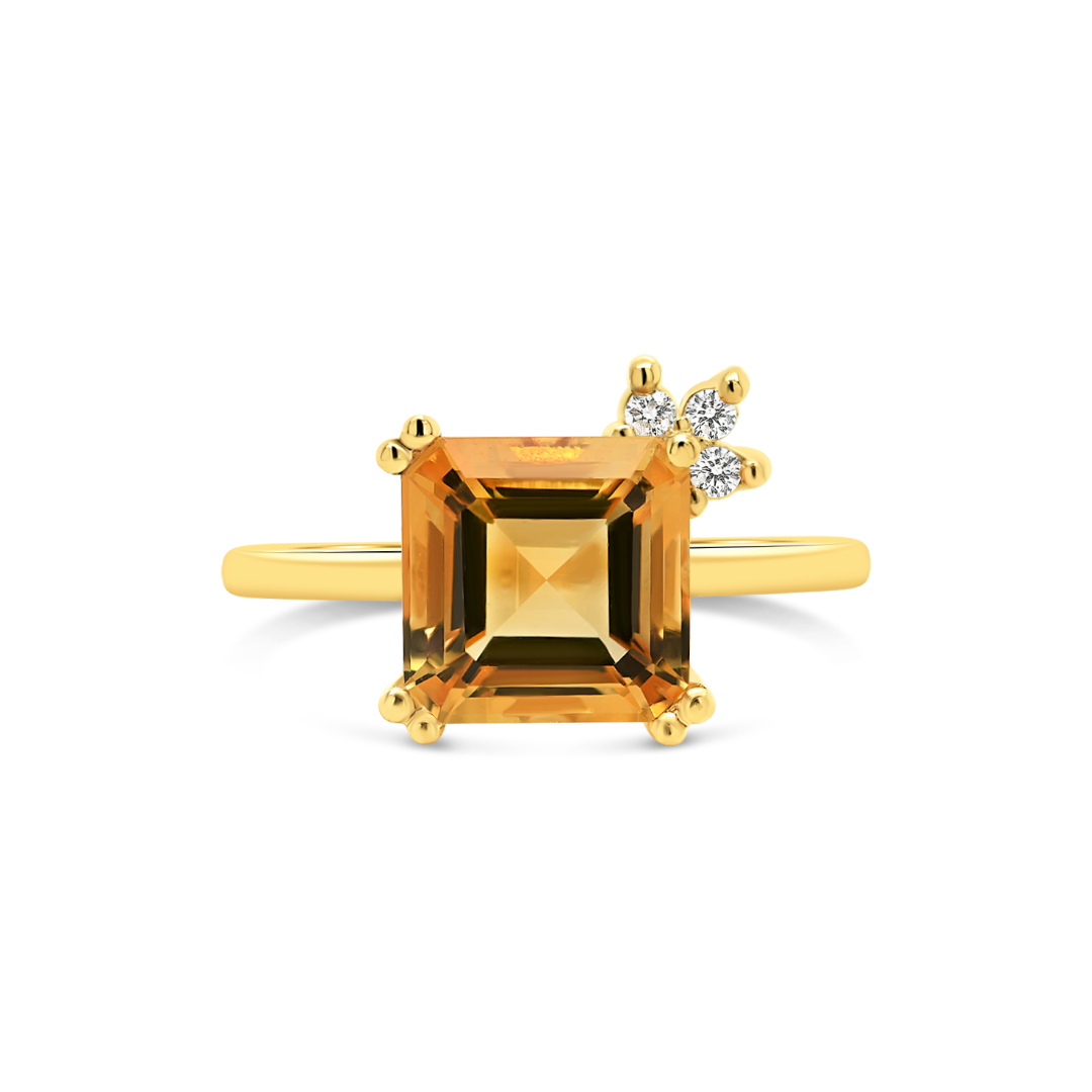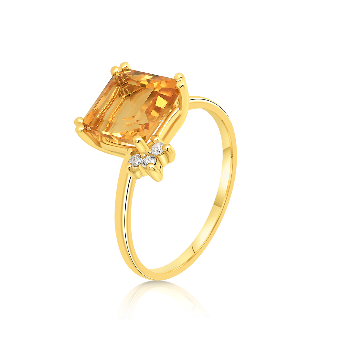 Inel din aur galben de 18K, cu Citrin și Diamante naturale