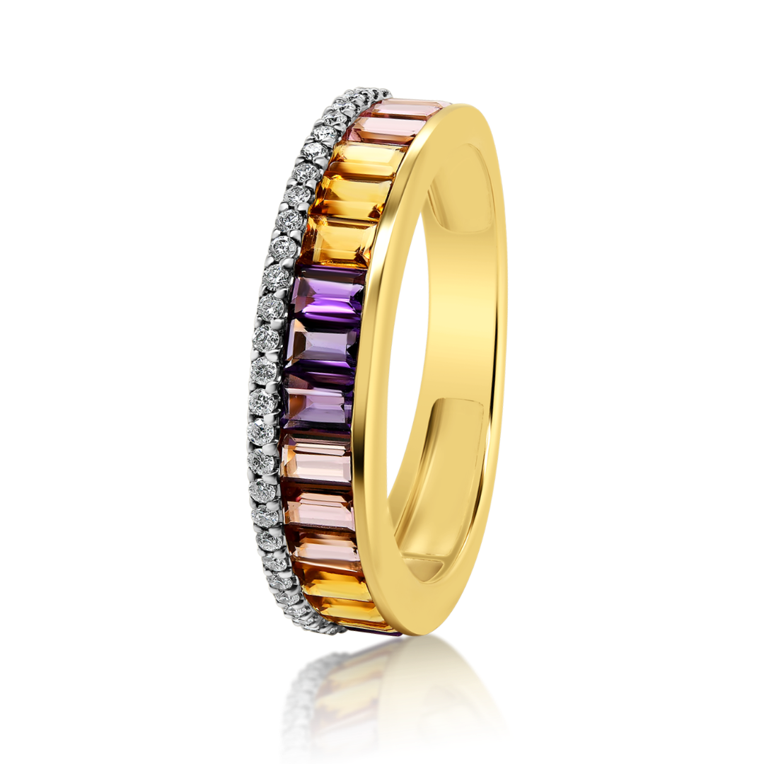 Inel din aur galben de 18K cu Turmalină, Ametiste, Citrin și Diamante naturale