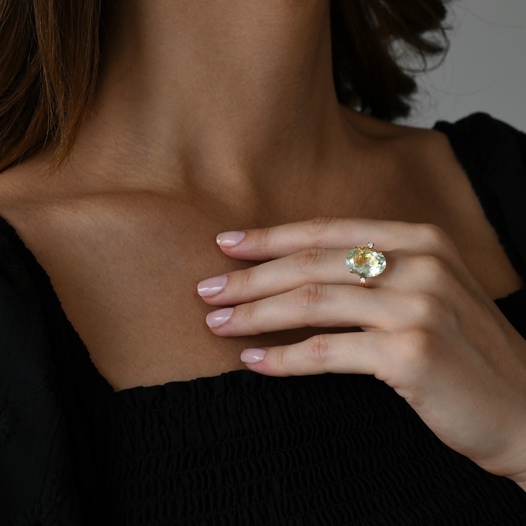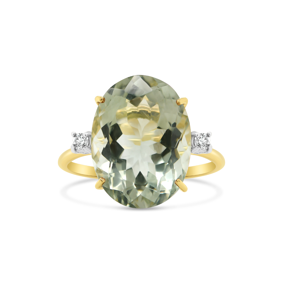 Inel din aur galben de 18K, cu Diamante naturale și Prasiolit